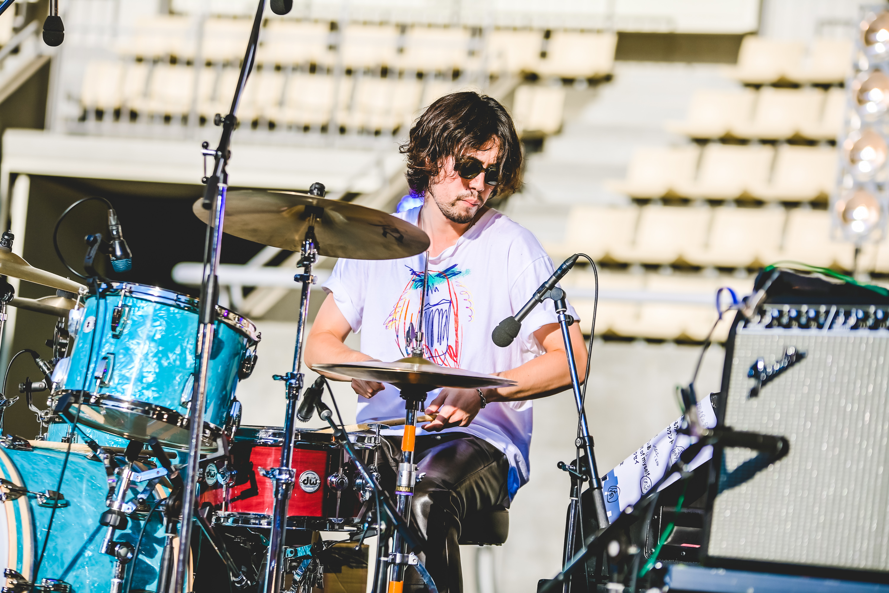 続く「恋しておくれよ」もそうだが、ただただ牧歌的なだけではなく、しっかりと激しさも感じられた。始まったばかりでありながらも、観客たちは早くも手を挙げて踊って楽しんでいる。岸川倖平(Vo.Gt)も話していたが、この青空、この緑、この人々と紛れも無く良い空間。気付くと後ろの芝生エリアで踊っている人も見受けられた。