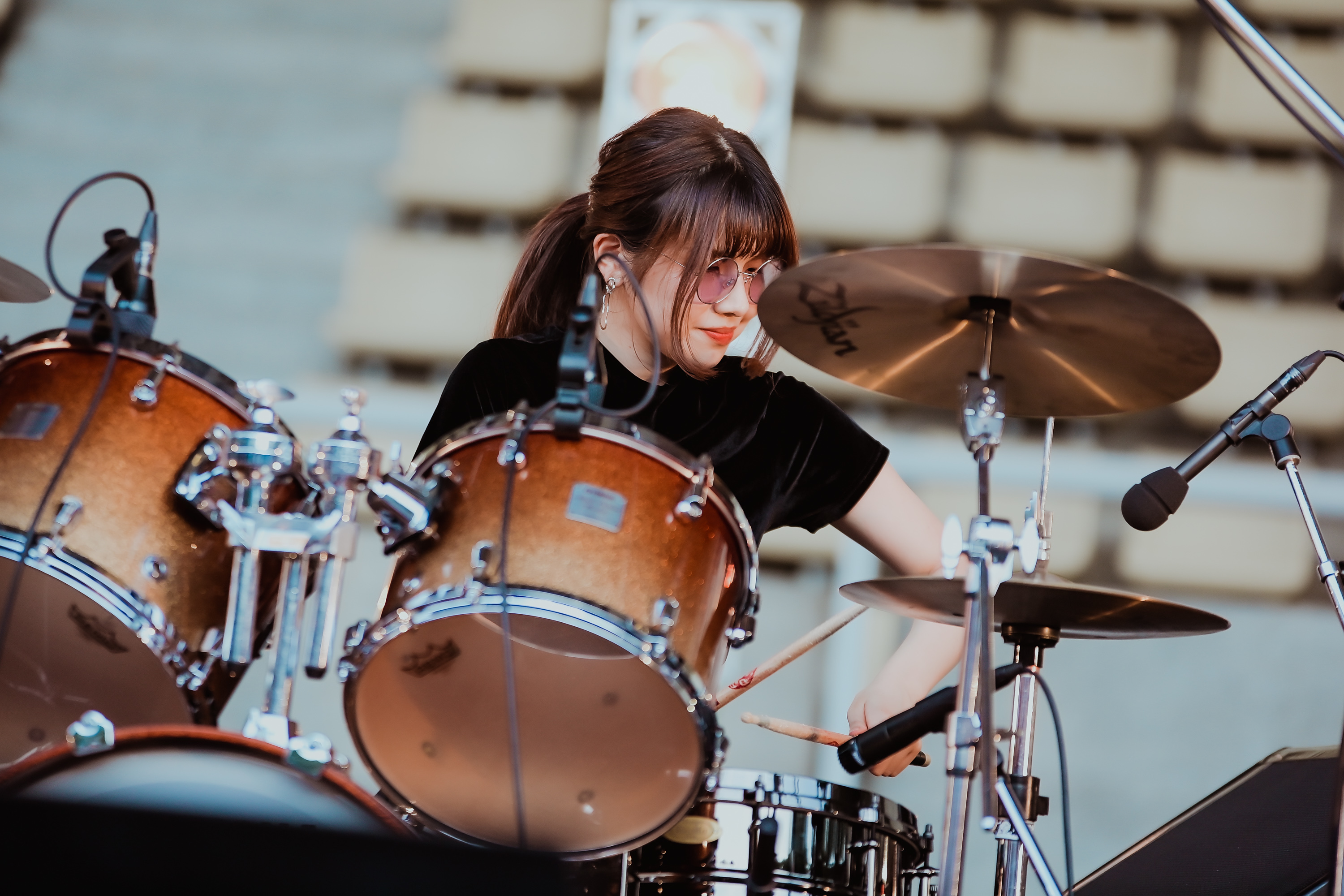 もちろん初野外であり、それに野外は似合うだろうとは思っていたが、想像以上に野外が似合っていた。3曲目「and i」、4曲目「夜に叶えて」はミドルテンポながらも、アップテンポ要素もあり、徐々にグーっと盛り上がってくる感じがある。「夜に叶えて」の終盤には、この日一番の晴れ模様になり、6曲目「じゃなくて」では、より照り輝く状況に。