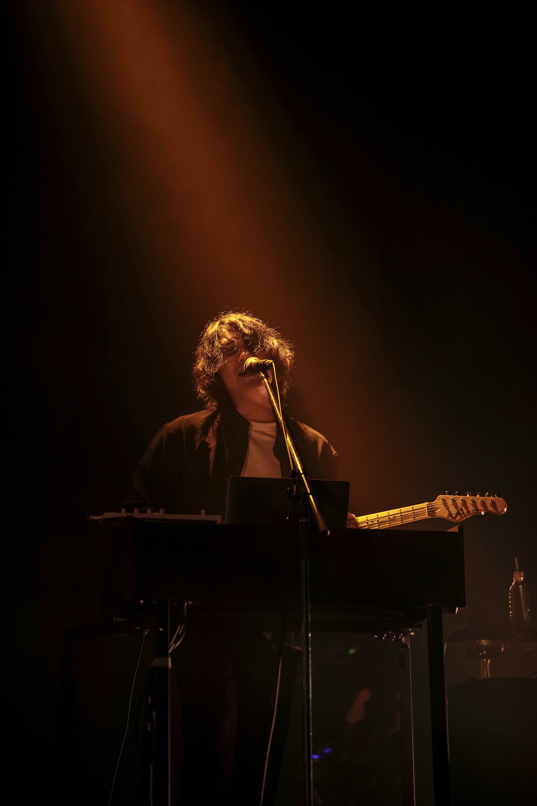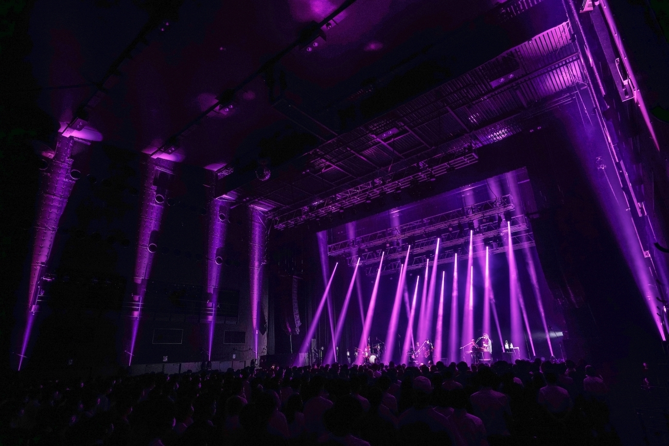 前半はステージ上のメンバーの輪郭をはっきり捉えないインスタレーション的なライティングが印象的だったのだが、それは選曲ともリンクしていた。「Mirror Mirror」での上から降るパープルのムービングライトは一定時間ステージを照らし、去っていく。謎かけのような歌詞とリンクして目を奪われた。さらに、SF世界のシューゲイズと言えそうな「レプリカント」、シンセベースやドラムパッドすらギターリフと横並びに血肉化した「Torch」まで、一貫した世界観で見せ、聴かせた。