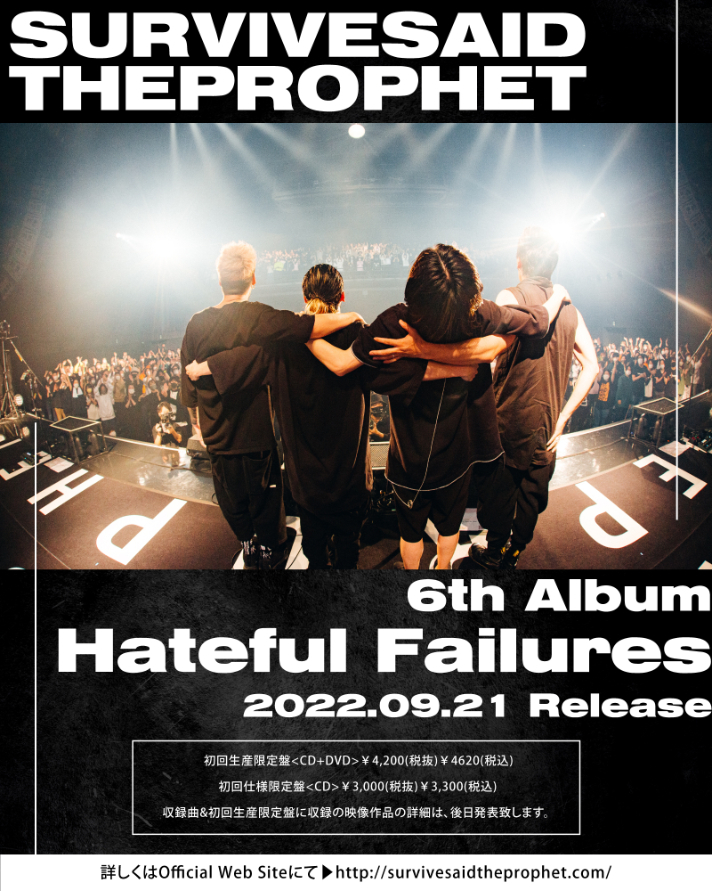 Survive Said The Prophet(通称:サバプロ)がニューアルバム『Hateful Failures』を9月21日に発売することを発表した。