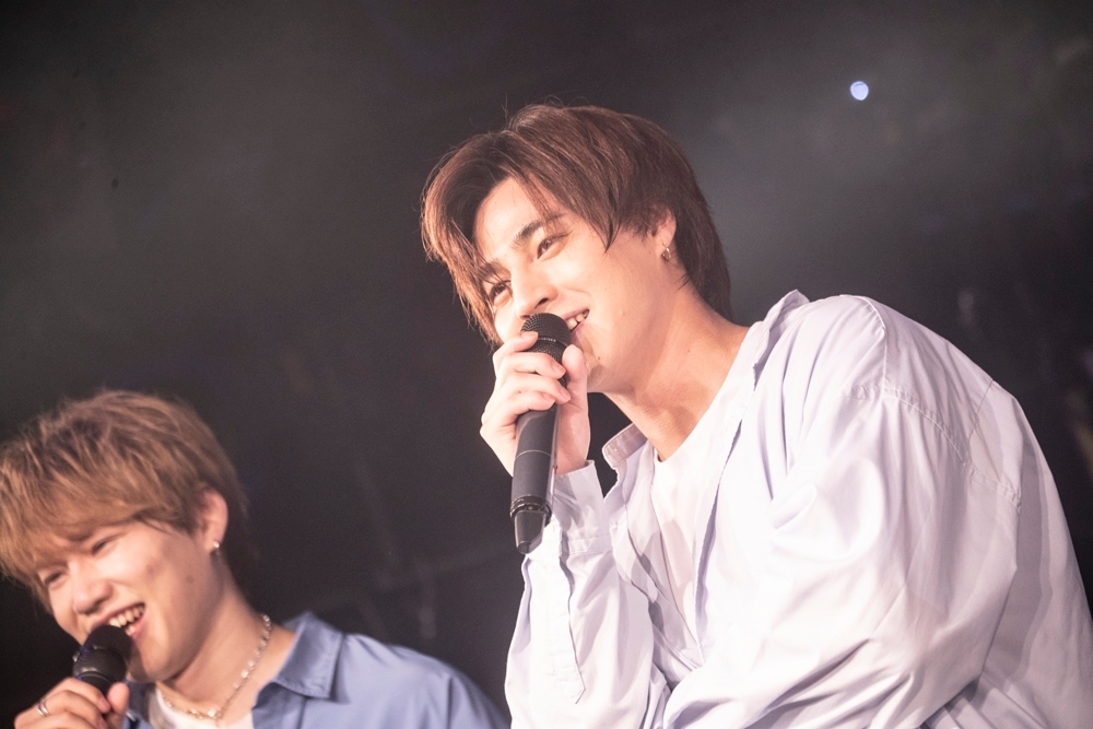 そのあとはステージにHIROTO、YU-TA、MASAKIが残り、ボーカルチームで新曲のバラード「Reason」を披露する場面がやってきた。ここでは3人の声の違いがはっきりと浮き彫りになり、HIROTOのエモーショナルな強さ、YU-TAのピュアな柔らかさ、MASAKIの陰のある憂い。これらが今後どのように混ざり合っていくのか。その化学変化に期待が高まった。