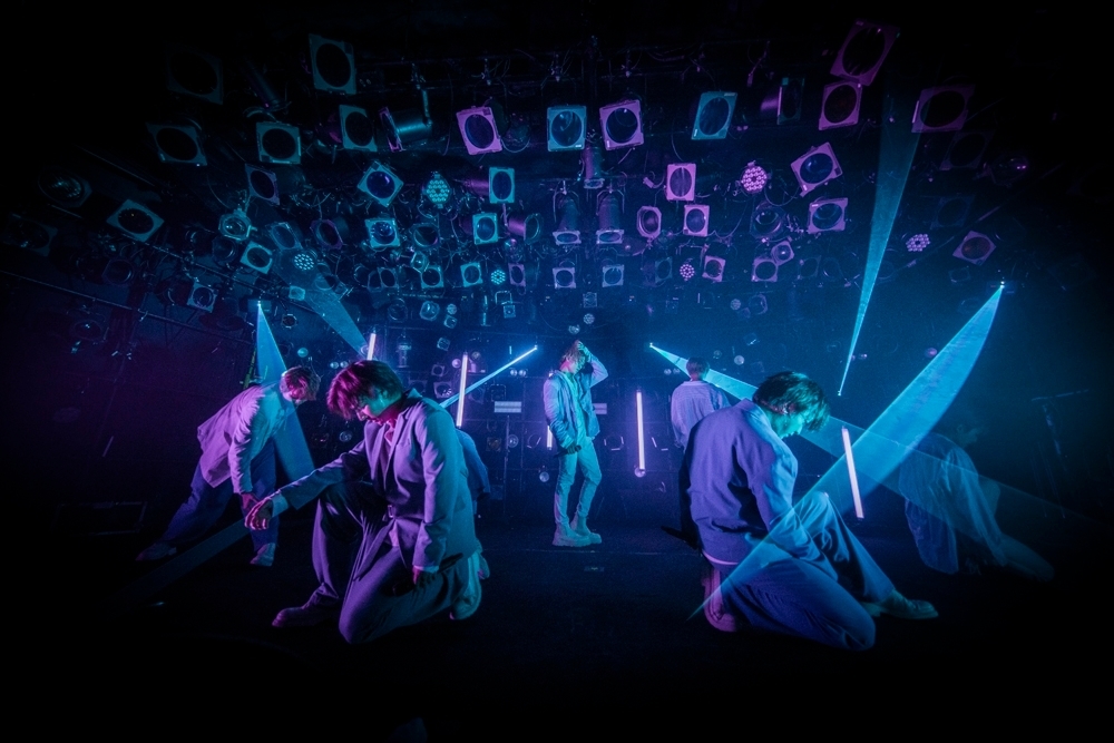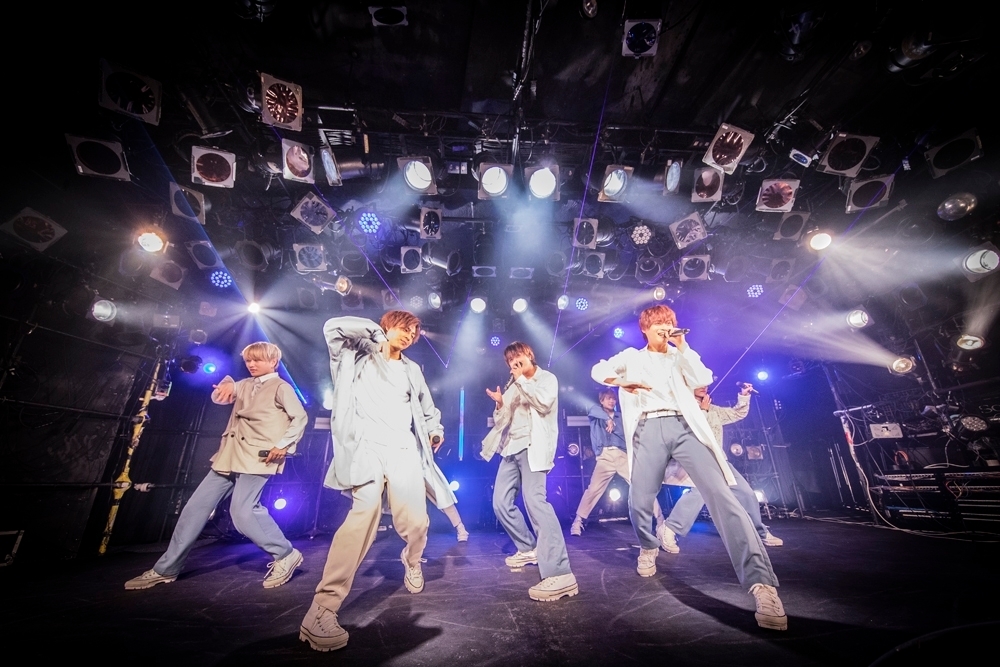 曲終わりで場内は暗転。スクリーンにMIKE TAIYUの新作の予告ムービー(?)が流れたあと、ライブはいよいよ終盤へ。最新曲「BLUE DAISY」をパフォーマンスして、青い花をステージに咲かせた彼ら。MASAKI、TAICHI、KEYという新メンバーがいることで、彼らよりも経験値のあるHIROTOからはみんなを支えようとする包容力、YU-TAからは滲み出るような優しさ、KENTO.iは堂々としたブレない存在感、TAIYUは少年っぽさを残したスマイルがさらに引き出されていくのが分かる。