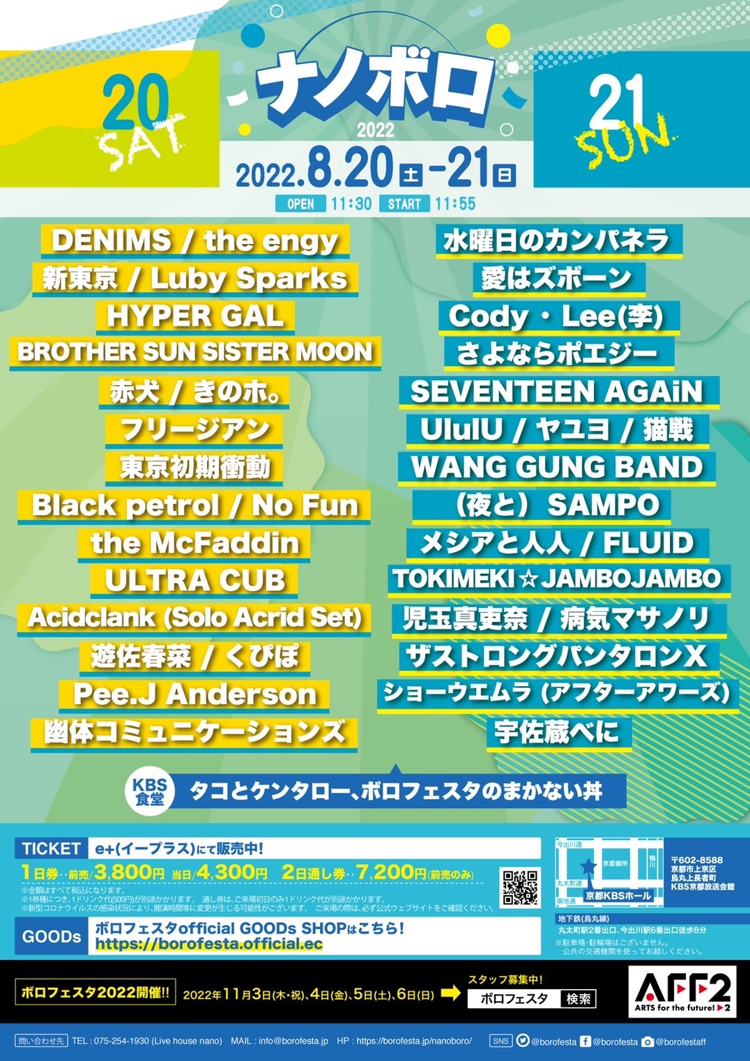 8月20日(土)、21日(日)に京都KBSホールで開催される『ナノボロ2022』の最終出演アーティストが発表された。