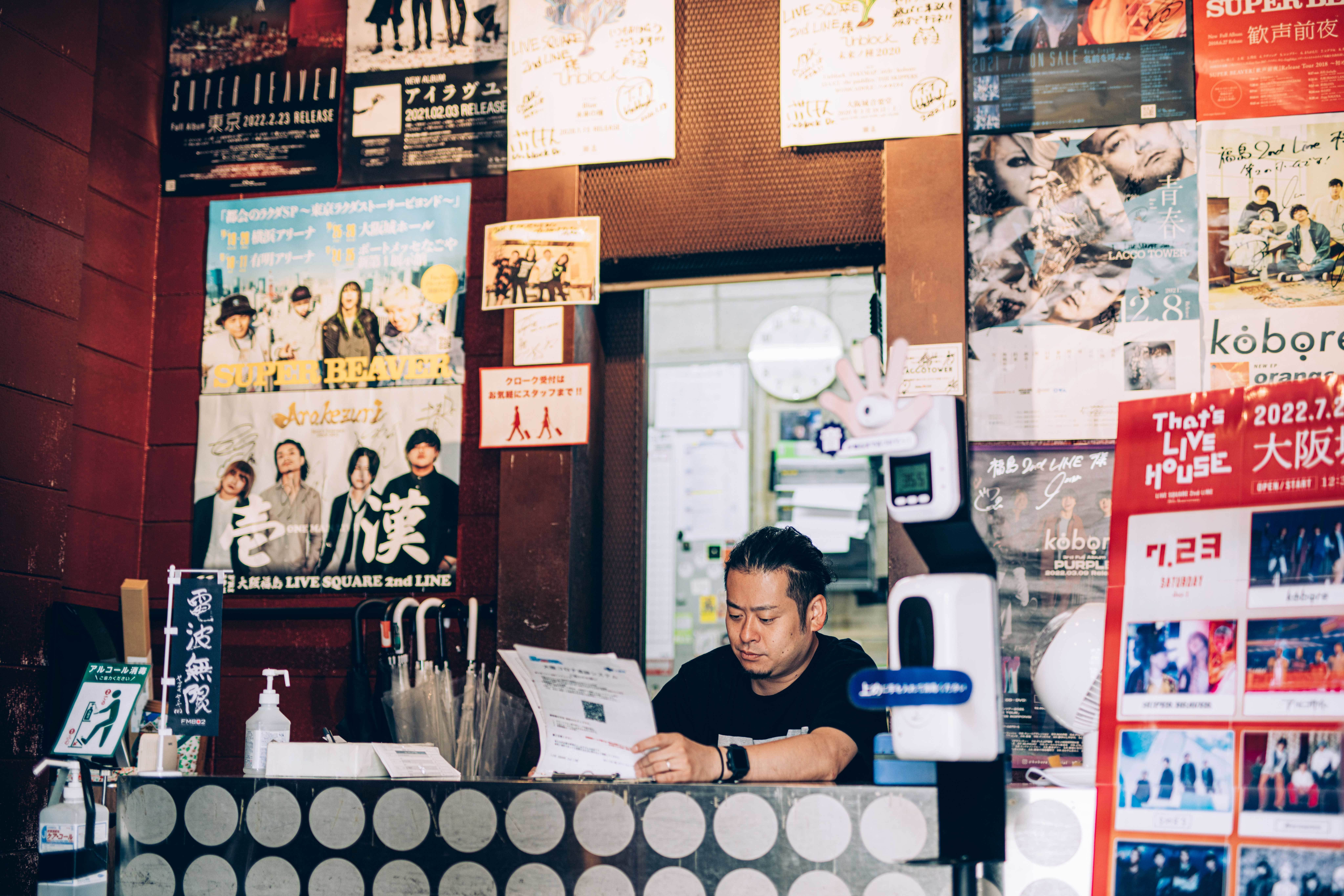 そもそもセカンドラインのある福島という街は、大阪のキタ・梅田やミナミ・心斎橋といった繁華街と違って、勝手に人が集まってくるエリアではないんですよね。だけどセカンドラインがあるから、この福島にわざわざ来てくれるアーティストやお客さんがたくさんいます。その上で、建物の構造的にステージとお客さんの距離感がとにかく近く、お客さんとアーティストが10代後半〜20代前半の世代が多いので、どこまでもアットホームなライブハウスでありたいなと思っています。それは誰かにとっての居場所になりたいとかではなくて、みんなが気軽に来てくれたり、久しぶりの仲間と集まれたりする空間でありたいなと。その場づくりやセカンドラインならではの魅力というのは、初代店長の岸本優二(大阪MUSE、 心斎橋JANUS、心斎橋BIGCATなど関西の名だたるライブハウスの制作・運営を手がける、有限会社ヘッドライン代表取締役)が作ってきたもので。