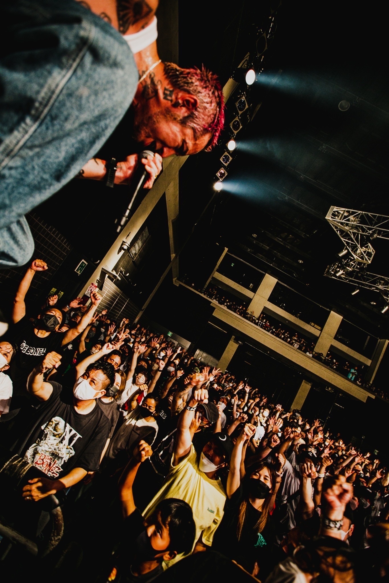 全力の、全身全霊のライヴ・パフォーマンス。それは世の中がどんな状況にあり、どのような規制が設けられていようと、すべての演者が観客に提供すべきものだ。しかしTheBONEZはいつもそれ以上のものを絞り出そうとする。実際、あくまで今現在なりのルールに則りながらのライヴだったが、筆者の目には群衆の中に飛び込んで彼らの頭上をサーフするJESSEの姿が見えるようだったし、実際には起きていない大合唱が聞こえてくるような感覚があった。そうした幻覚や幻聴めいたものに見舞われたのは、バンドが発していた“気”の尋常ではない強さと、それに応えようとするオーディエンスの、これまた半端ではない熱がそこに渦巻いていたからこそであるはずだ。ツアー開幕当時から感じられたその熱が、いっそうの高まりをみせていたことも付け加えておきたい。