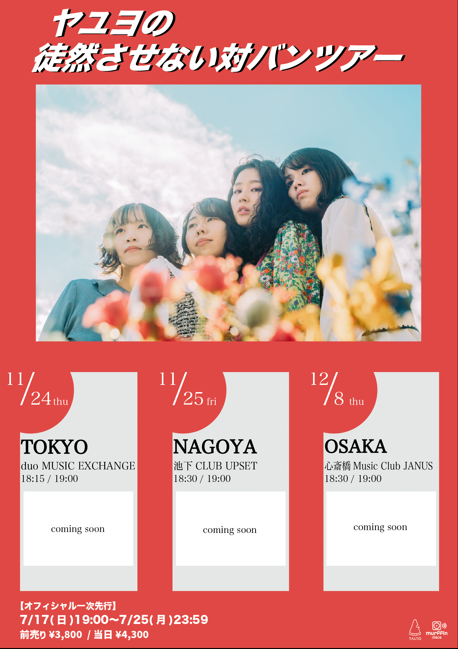 ヤユヨが、バンド初となる東名阪対バンツアー『ヤユヨの徒然させない対バンツアー』の開催を発表した。