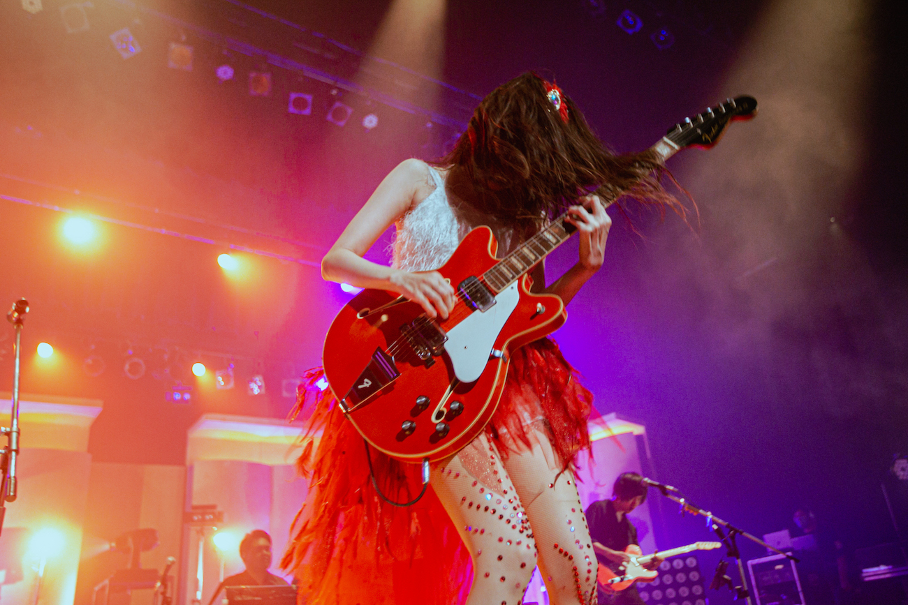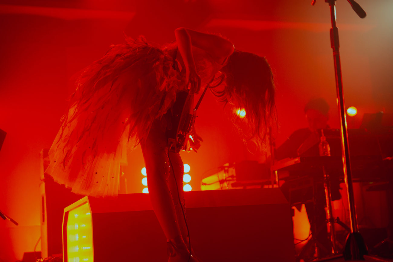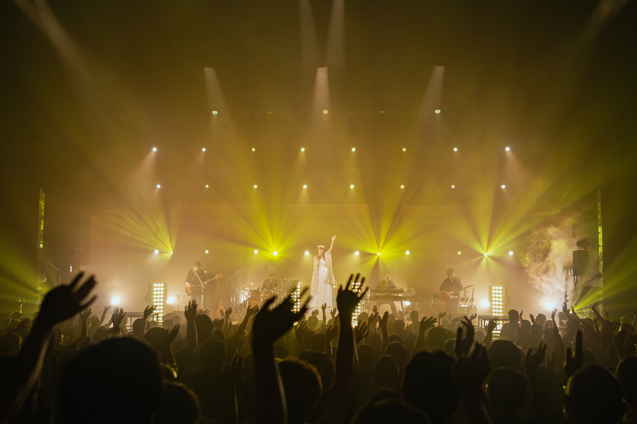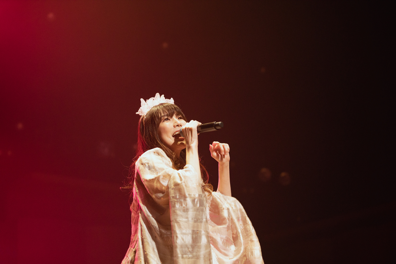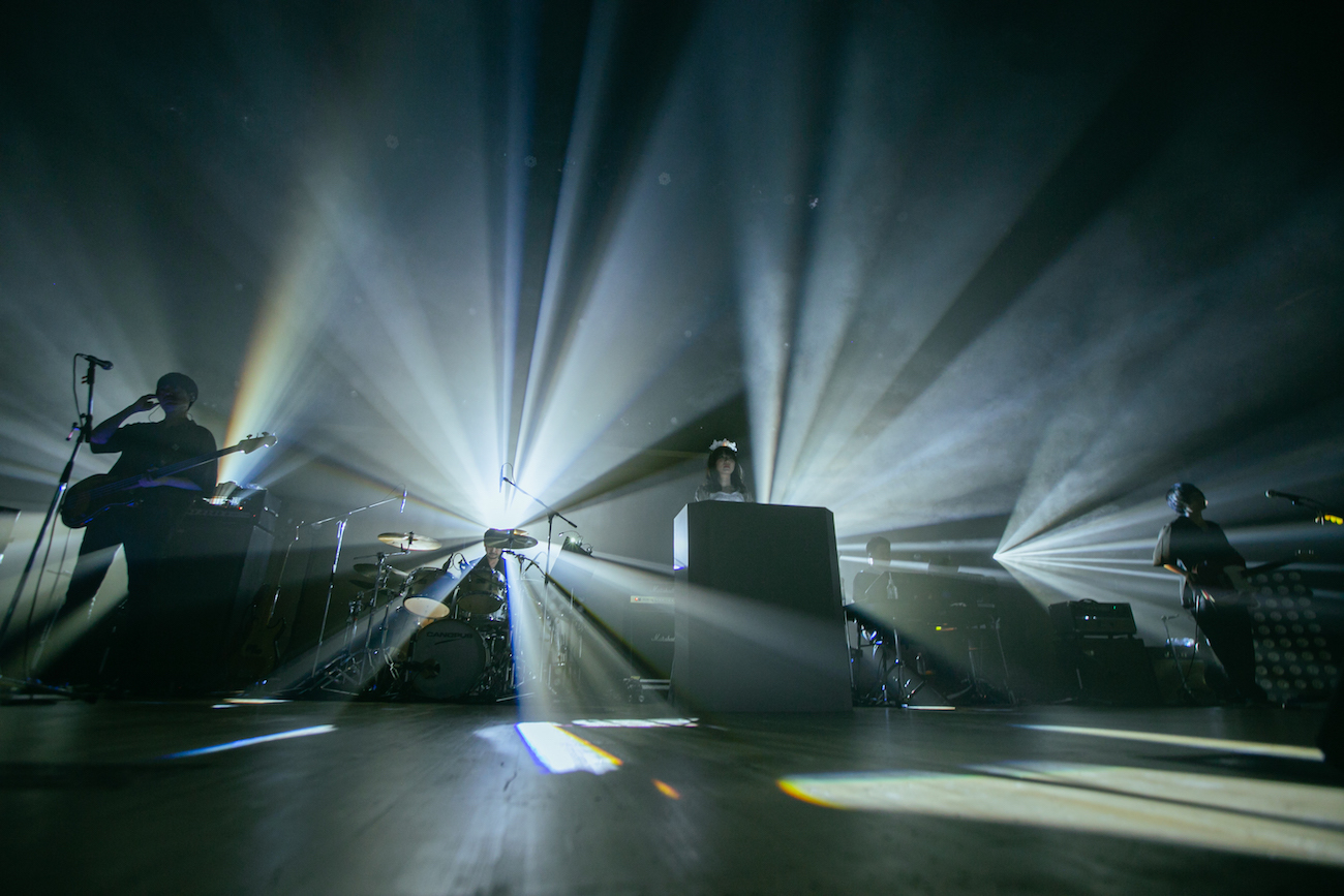 その勢いを増幅させるように始まった「原点怪奇」は、明滅を繰り返す暗い赤と緑の光が、凄まじい勢いで突き進むバンドサウンドが放つ妖しさを極限まで高めていくと、休むことなく「ダ・カーポ」へ。楽器隊が獰猛なアンサンブルを繰り広げる中、黒木は複雑なキメに合わせて頭を振り乱す。シリアスな空気が立ちこめる中聞こえてきたのは、不気味な響きのクワイアコーラスと、黒木の語り。「あれ(光)を手に入れるためなら、私、なんだってやってきた」。黒木の白いドレスに照射された赤黒いもやのような光は、まるで胸の奥底に秘めた感情を炙り出すかのよう。そこからなだれ込んだ「火の鳥」で、轟々と燃え盛る炎のような照明がステージを包み込む中、黒木は衣装を着替えて不死鳥のごとく生まれ変わるという、凄まじい緩急をつけた息つく暇もない展開に、とにかく圧倒させられた。また、この日のライブコンセプトの中に「美しい光」と「心の篭った音」という話があったが、まさにこの2つが要になっていて、楽曲に込められた感情を引き上げていく美麗なライティングも、どれだけ轟音が渦巻く場面であろうと、全楽器の音がはっきりと聴き取れる外音も、とにかく素晴らしかった。