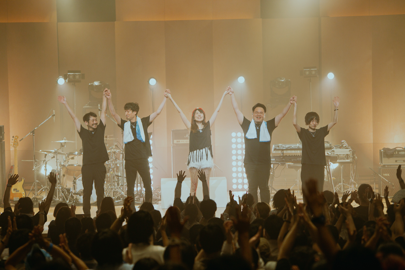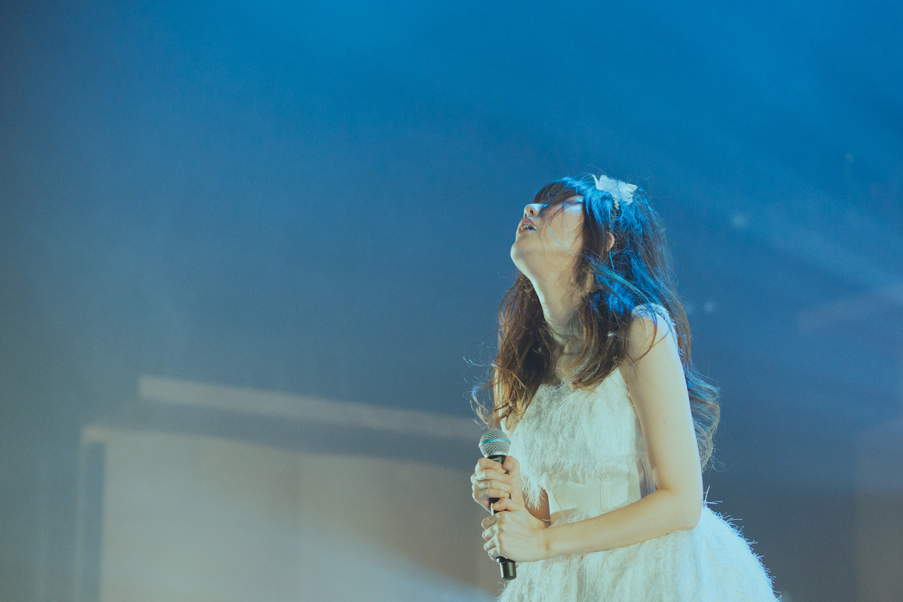 黒木「この会場を、このままモロゾフの缶々にぎゅうぎゅうに詰め込んで、みんなを生き埋めにできたらいいのになんて(苦笑)、すごく自分勝手なことを考えてしまいました。それはできないから、私はステージにタイムカプセルを作ることにしました。美しい光と、心の篭った音と、みんなの想像力があれば、時空なんて簡単に飛び越えられると思っているので、今日は100年先も色褪せない一晩を作る気持ちでよろしくお願いします」