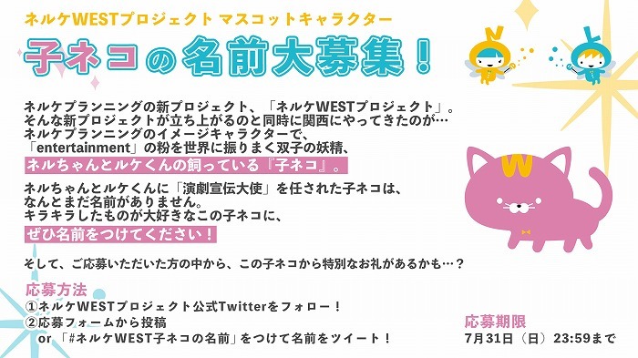ネルケWESTマスコットキャラクター 子ネコの名前大募集!