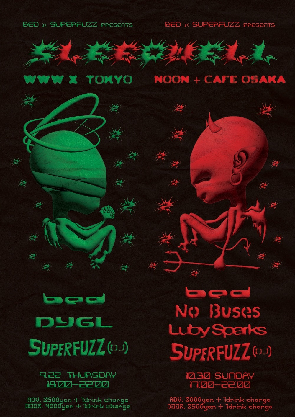 2022年より都内のクラブ/ライブハウスでライブ活動を始めたロックバンド・bedと、渋谷Club Malcolmを拠点にするDJパーティ/クルーのSUPERFUZZが、新パーティ『SLEEPWELL』を立ち上げた。その第一弾が東京と大阪で開催される。