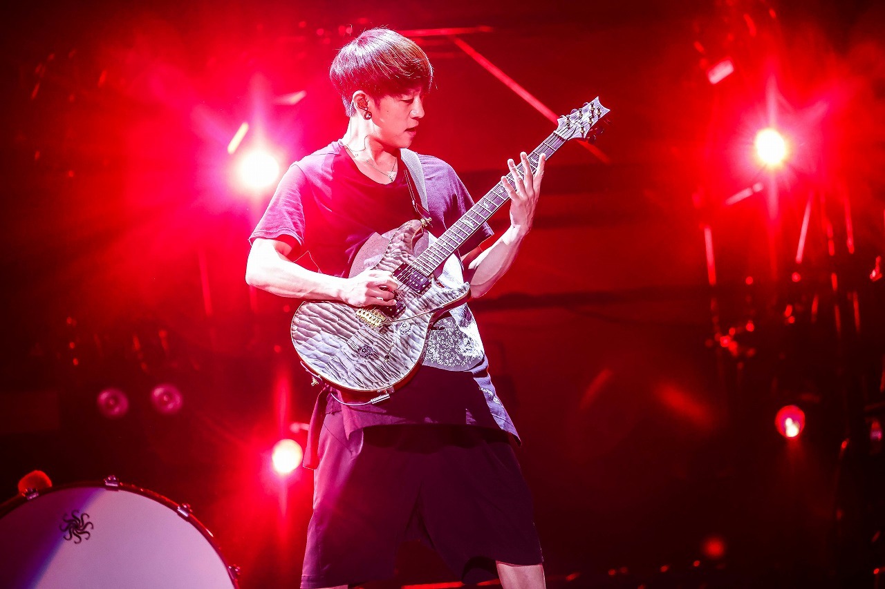 そして、「Ø CHOIR」のダンサブルなビートで観客全員をジャンプさせると、「メンバーからの音のメッセージ!」とTAKUYA∞が他の4人にバトンを渡した「ANOMALY奏者」から後半戦がスタート。その「ANOMALY奏者」はフュージョンとラウドロックのミクスチャーなんて言ってみたいインストナンバーだ。誠果、信人、克哉、彰、真太郎と繋げていったソロのリレーで会場を盛り上げたところに前半の白を基調とした衣装から、黒を基調とした衣装に着替えたTAKUYA∞がステージに再登場。「最高の夜を!」というTAKUYA∞の雄叫びに誠果のサックスのブロウが応え、無数のレーザービームが飛び交う中、「ナノ・セカンド」になだれこむ。そして、そこに繋げた「Touch off」とアンセミックなロックナンバーの連打にジャンプで応える観客をさらにジャンプさせたのが、「ヤバい一体感をコロナ禍の中で作り上げるぞ!」とTAKUYA∞が声を上げた「IMPACT」。