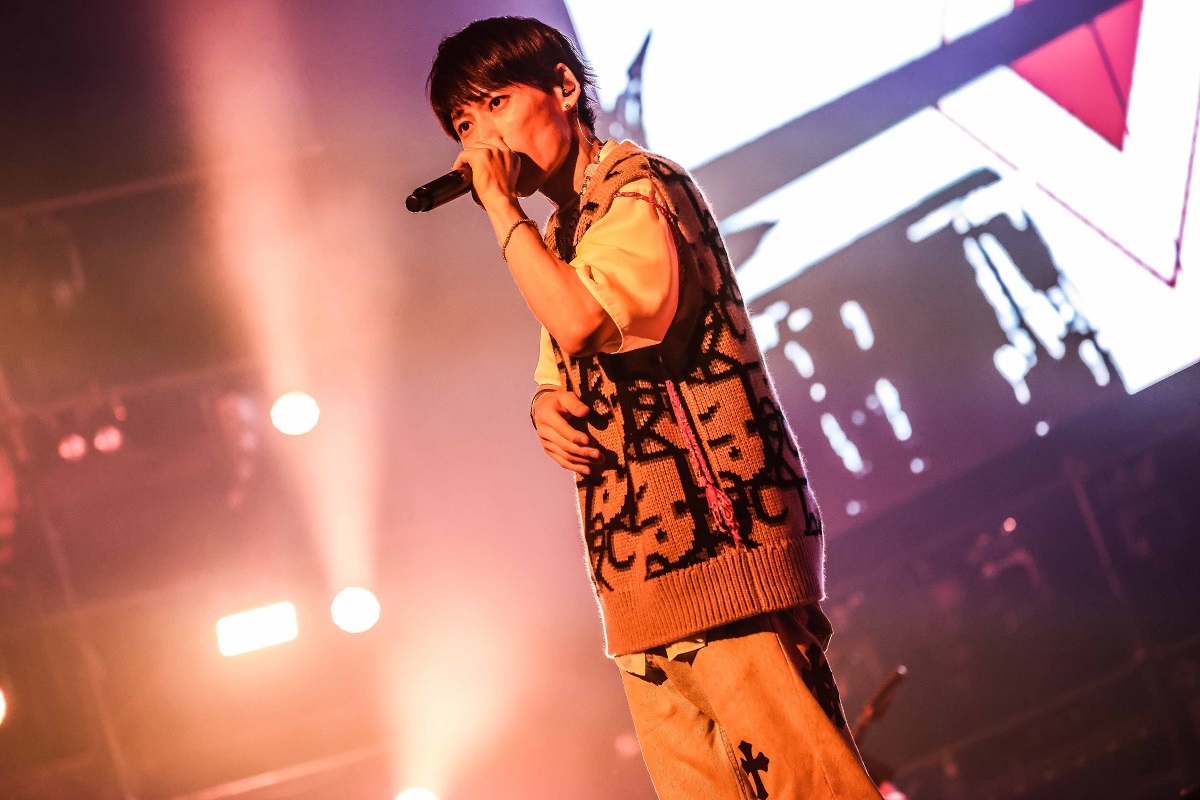 生きる意味、生まれた意味は自分で作るしかないというメッセージを、アンセミックな曲調に込めつつ、かつてcrewのみんなと同じ場所に立っていた自分は、そこからここまで上り詰めた、だからみんなにもできるはずだと叱咤激励する「Q.E.D.」で前半戦を終えると、中盤は「えくぼ」、8月17日にリリースする新曲の「ピグマリオン」――心の中の大切なことを歌ったバラードをじっくりと聴かせる。