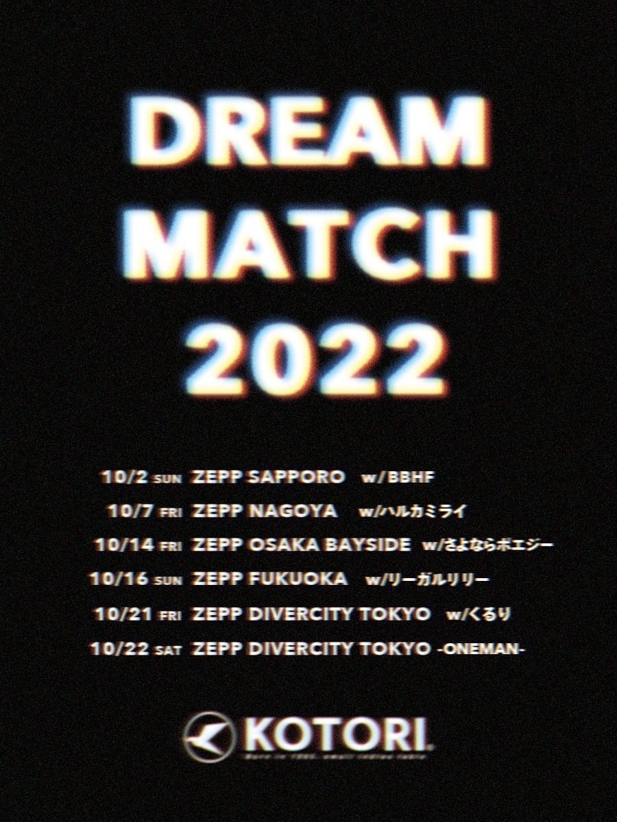 KOTORIが10月に開催するZeppツアー『DREAM MATCH 2022』のゲストアーティストが発表された。
