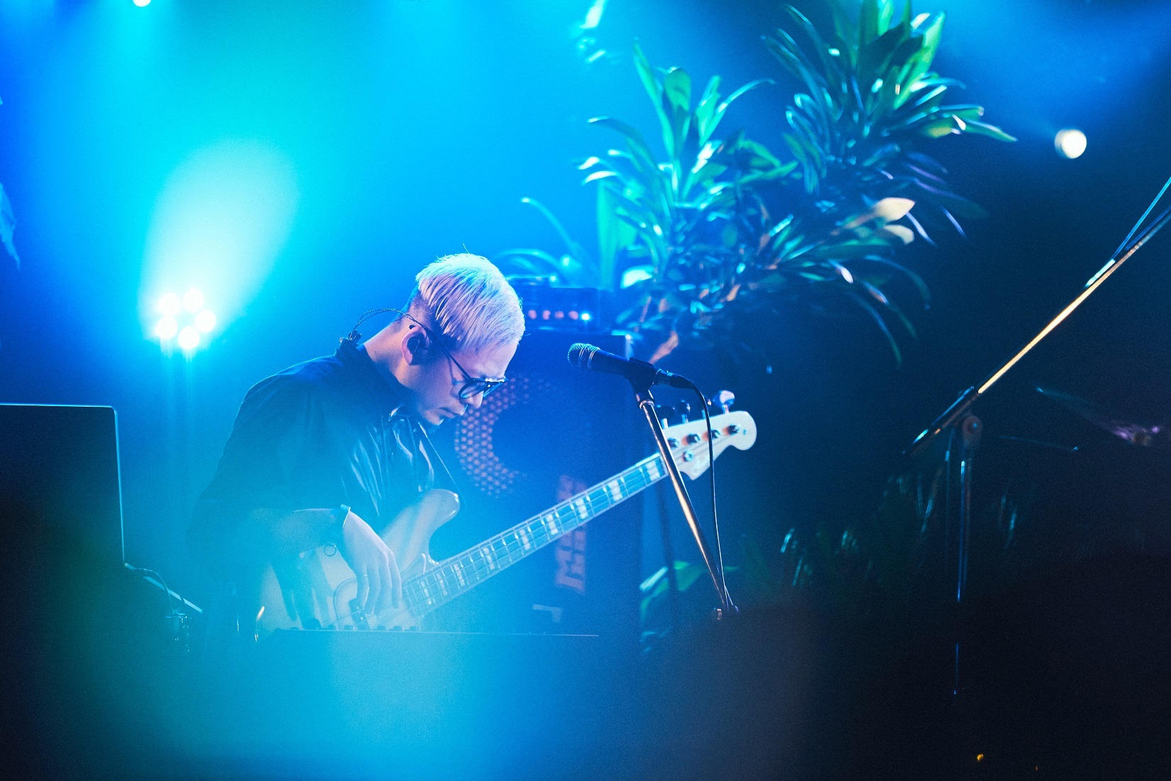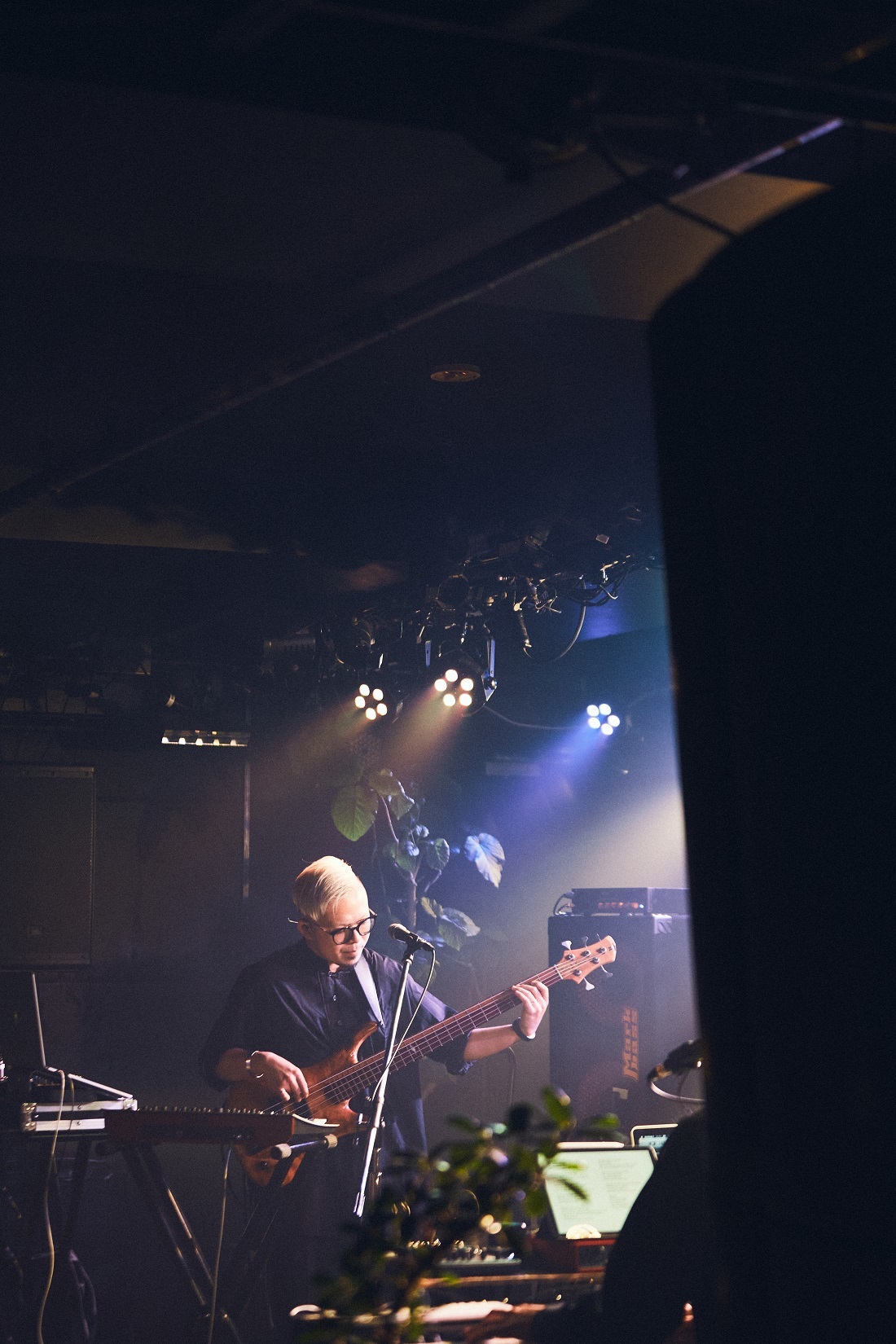 この日は初期のナンバー「Gently」でライブがスタート。オートチューンの効果と淡いシンセの音色を活かした、文字通りやさしい響きをもって、まずはRyuがソロでホーリーなムードを醸し出す。ステージいっぱいに飾られた植物の緑と照明のブルーが溶け合うさま、オーディエンスの胸に深く染みわたっていく伸びやかな歌声もたまらない。ワンマンになったぶん、よりいっそう気持ちの入っている演奏がのっけから見て取れた。