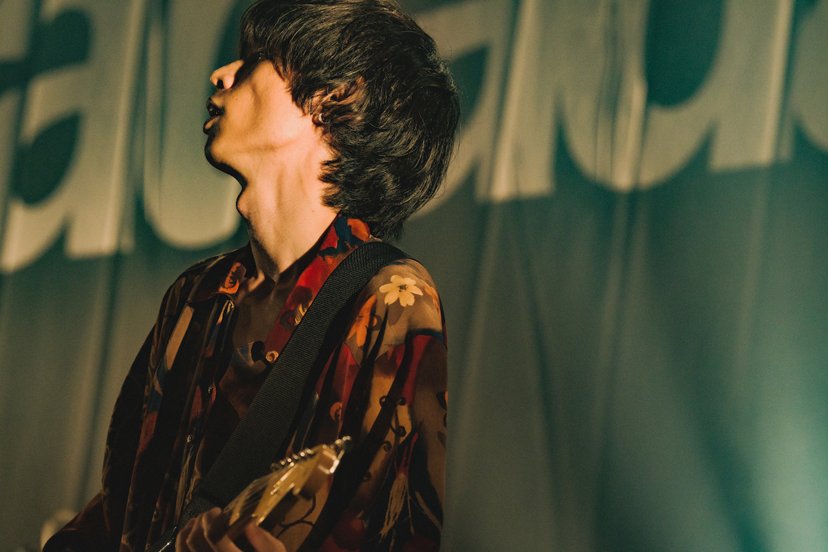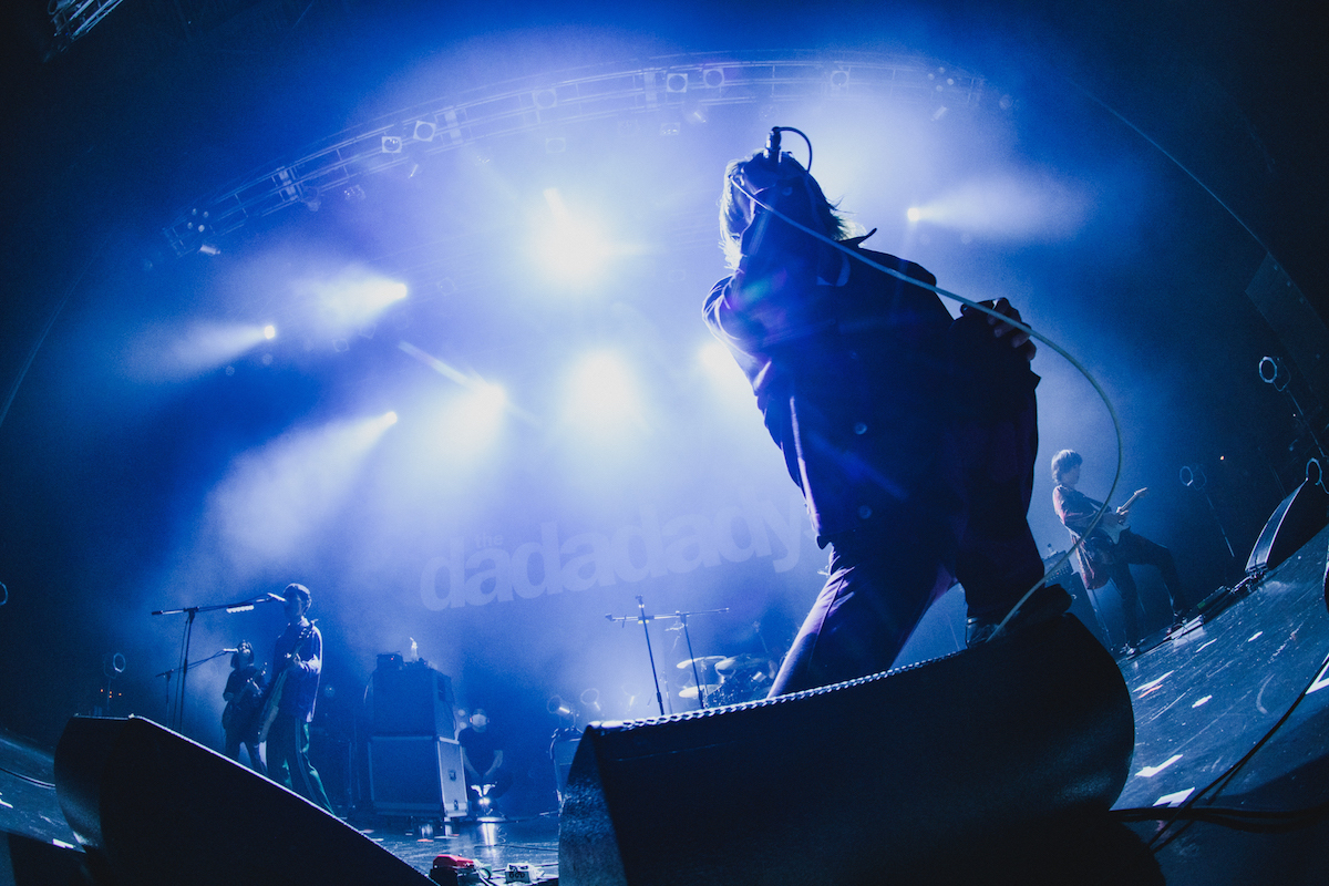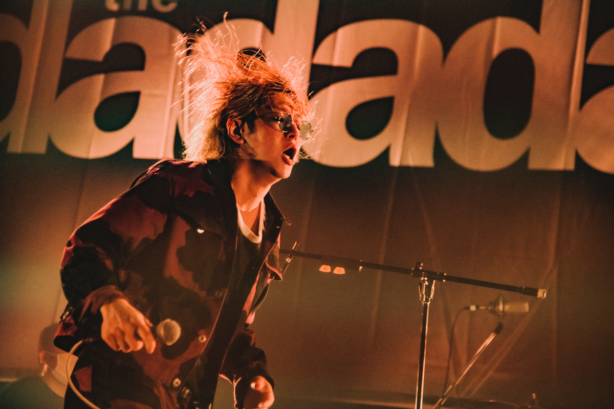 「レッツ音楽!」という掛け声で小池が一時ステージから捌け、4人によるファンキーなジャムセッションが始まるのだが、こんなときのバンド演奏はすこぶるタイトである。しかし、小池という感情表現のダイナモが加わると、the dadadadysは再び危ういコンビネーションの魅力を放ち始める。バンドの魅力とは、必ずしも正確無比な演奏にあるのではない、そんなロック表現の深みを教えてくれるようだ。「PUXXY WOMAN」においても、人間同士のスリリングな鬩ぎ合いが浮かび上がってくる。猛スピードでぶっ放される「とめられない」の後には、「屋上から飛び降りた、僕に手紙をくれた女の子と、その気持ちがわかるすべての人間に贈ります」という言葉を添え、こちらもteto時代からのレパートリーである「遊泳地」へ。照明演出もさることながら、トリプルギターによるそのブライトな音像は、ある種の祈りのように眩い光を呼び込んでいた。ステージを締め括る「恋」まで、限られた持ち時間の中でも完全燃焼してみせる大熱演であった。