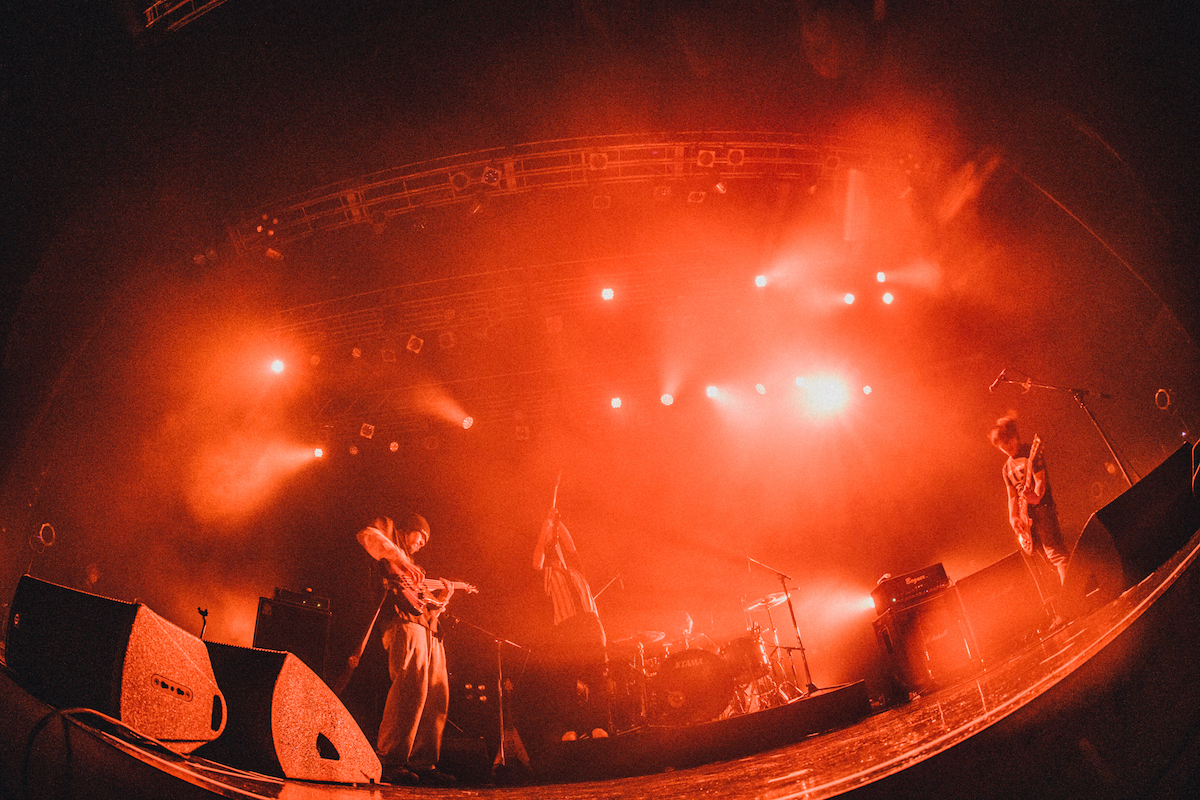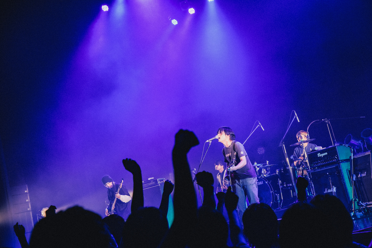 バンド初の映画主題歌として書き下ろされた「First day song」を歌うとき、清水は「大切な曲」と紹介していた。まさに、触れる者とじっくり対話を繰り広げるような1曲だ。そして「1994」の後、「次は夕焼けの曲なんだけど、俺たちが連れて行くんじゃなくて、俺たちを連れて行ってくれ!」と呼びかけ、高らかなコーラスとともに飛び込んでゆく「TONBO」は、Age Factoryによる音の風景の真骨頂。トドメの一撃とばかりに放たれる「Feel like shit today」まで、片時も目を離すことのできないパフォーマンスであった。
