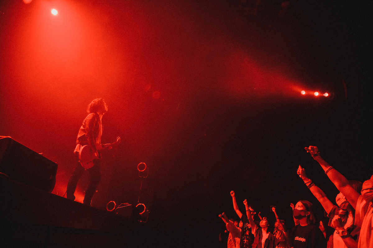感染症対策が講じられた会場に向けて挨拶しながら、「ルールはあるけど、頭の中は自由なんで」と語る清水。ドラマティックに展開してゆく「Dance all night my friends」では、楽曲の力で心の距離をグッと詰めて語りかけてくるようだ。この後にはアルバム『EVERYNIGHT』の収録曲が続き、変則的なグルーヴでオーディエンスを飲み込み大きく波打たせる「HIGH WAY BEACH」や、静と動のコントラストでダイナミズムを描き出す「Everynight」を披露。刺激的で美しい音響と歌心がガッチリと手を取り合うAge Factoryのパフォーマンスには、心象と情景を強烈に喚起する力がある。ライブ会場ごと、音の風景に包まれるようだ。