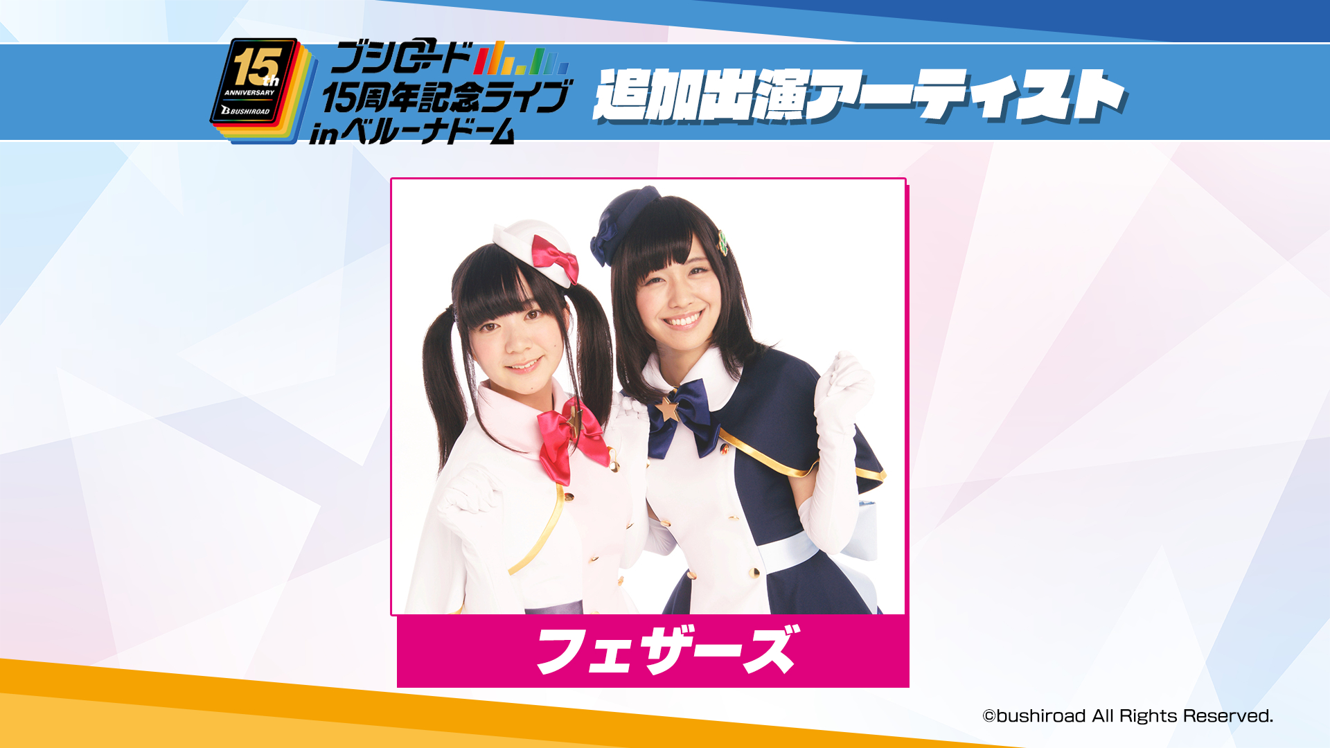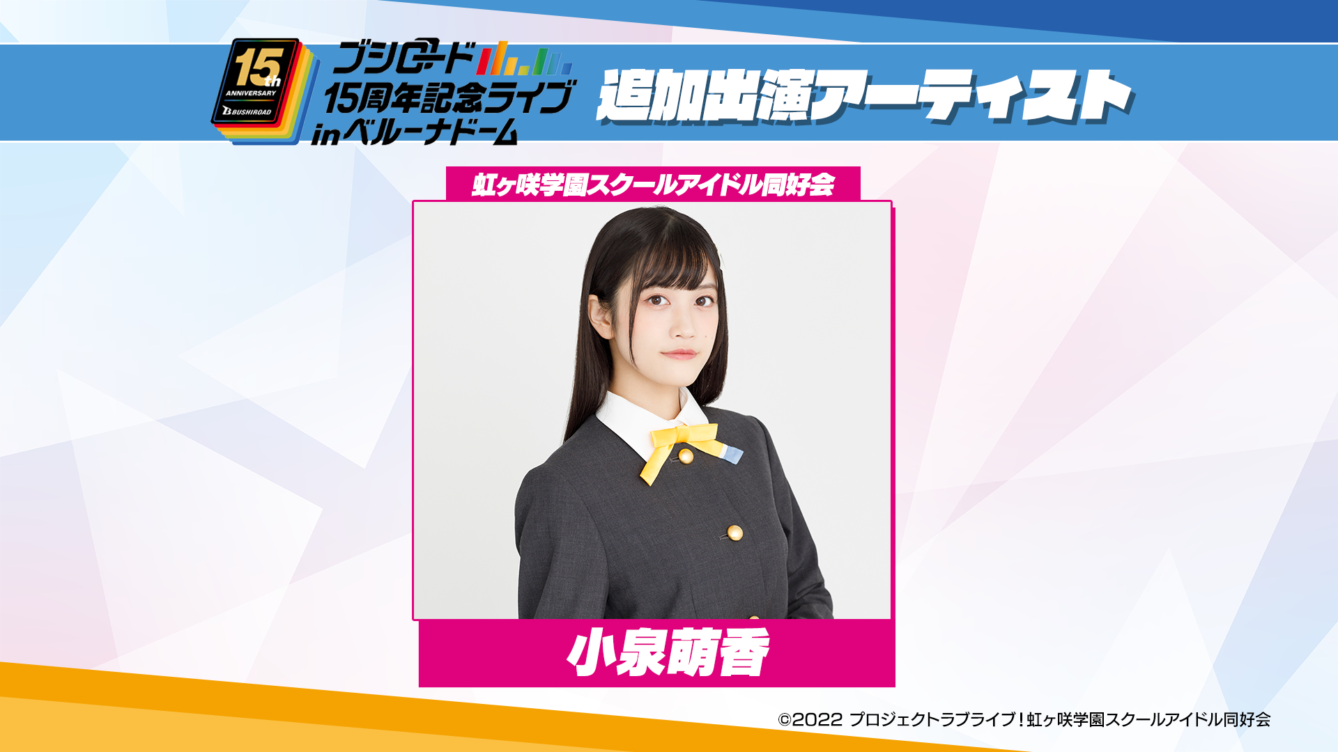 追加出演アーティストとしてフェザーズが決定。また、虹ヶ咲学園スクールアイドル同好会として小泉萌香が出演が発表された。