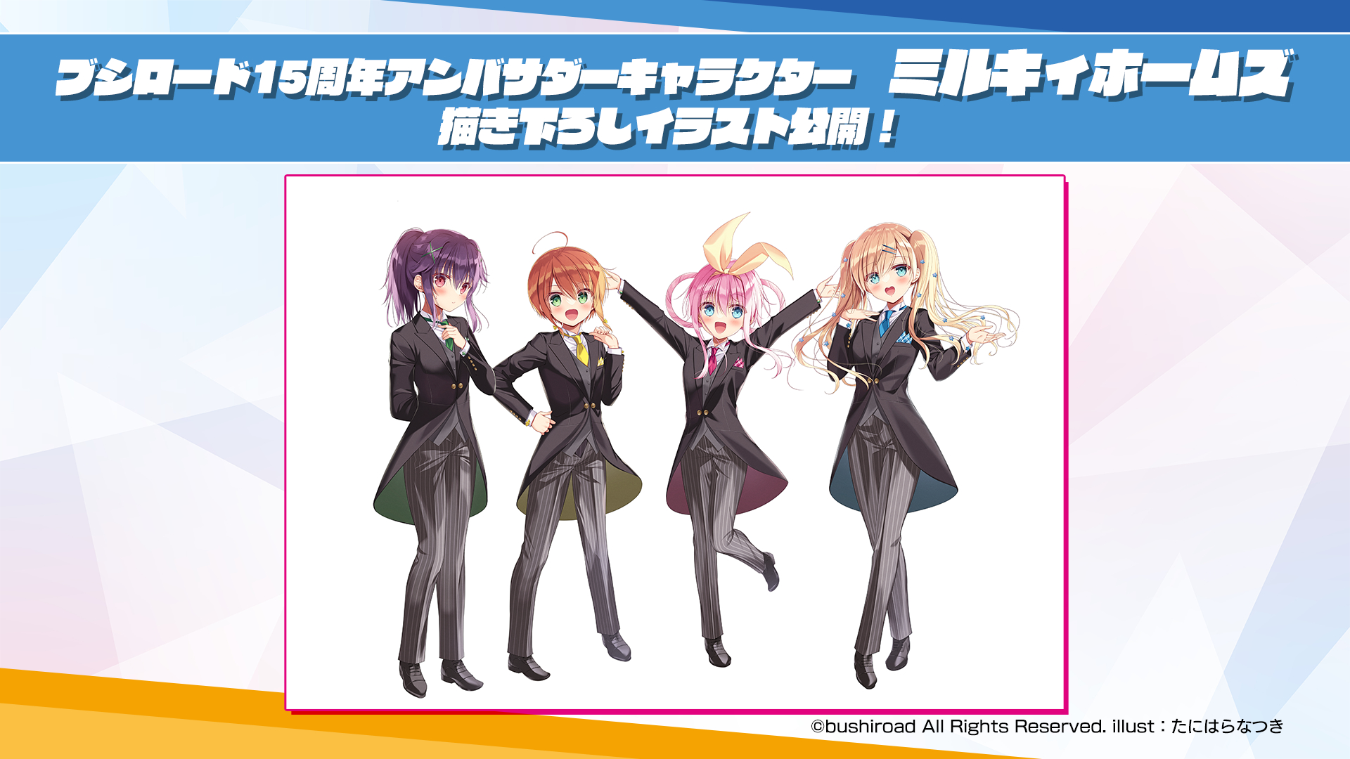 ブシロード 15 周年のアンバサダーキャラクターであるミルキィホームズの新規イラスト公開された。本イラストはたにはらなつきによる新規描き下ろしとなっている。