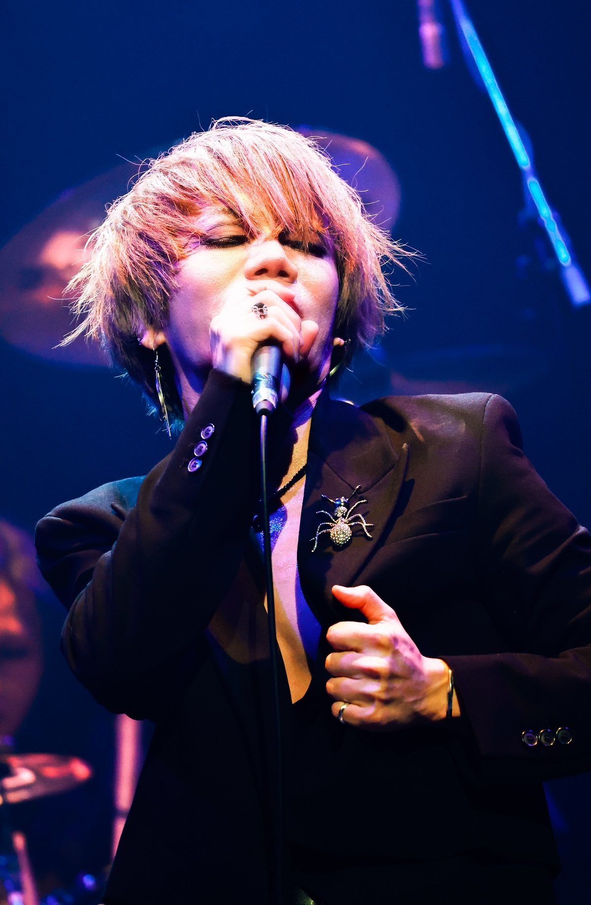 猟牙が「ヴィジュアル系Yeah! バンギャルYeah!」と狼煙をあげての後半戦でも、キラーチューン「千年ノ色彩」でいきなりヘドバンをかまし、地蔵に向かって「揺らせ、おら!」と実力行使。ギター隊が掛け合うサビの威力は満場の拳を導くが、それでも足りずに「お前ら寝てんのか? 身も心もズタボロにしませんか!」と投下されたのは「ブルータルモダン」だ。タイトルの通り“ブルータル=凶悪”な衍龍のリフから、猟牙は憎しみに満ちたリリックをマシンガンのようにブッ放し、ヘドバンしながら歌うという高等技能まで披露。その周りでは弦楽器隊が自由に動き、NIKKYもあふれるエモーションのままビートを刻んで、クライマックスへと駆け上がる。