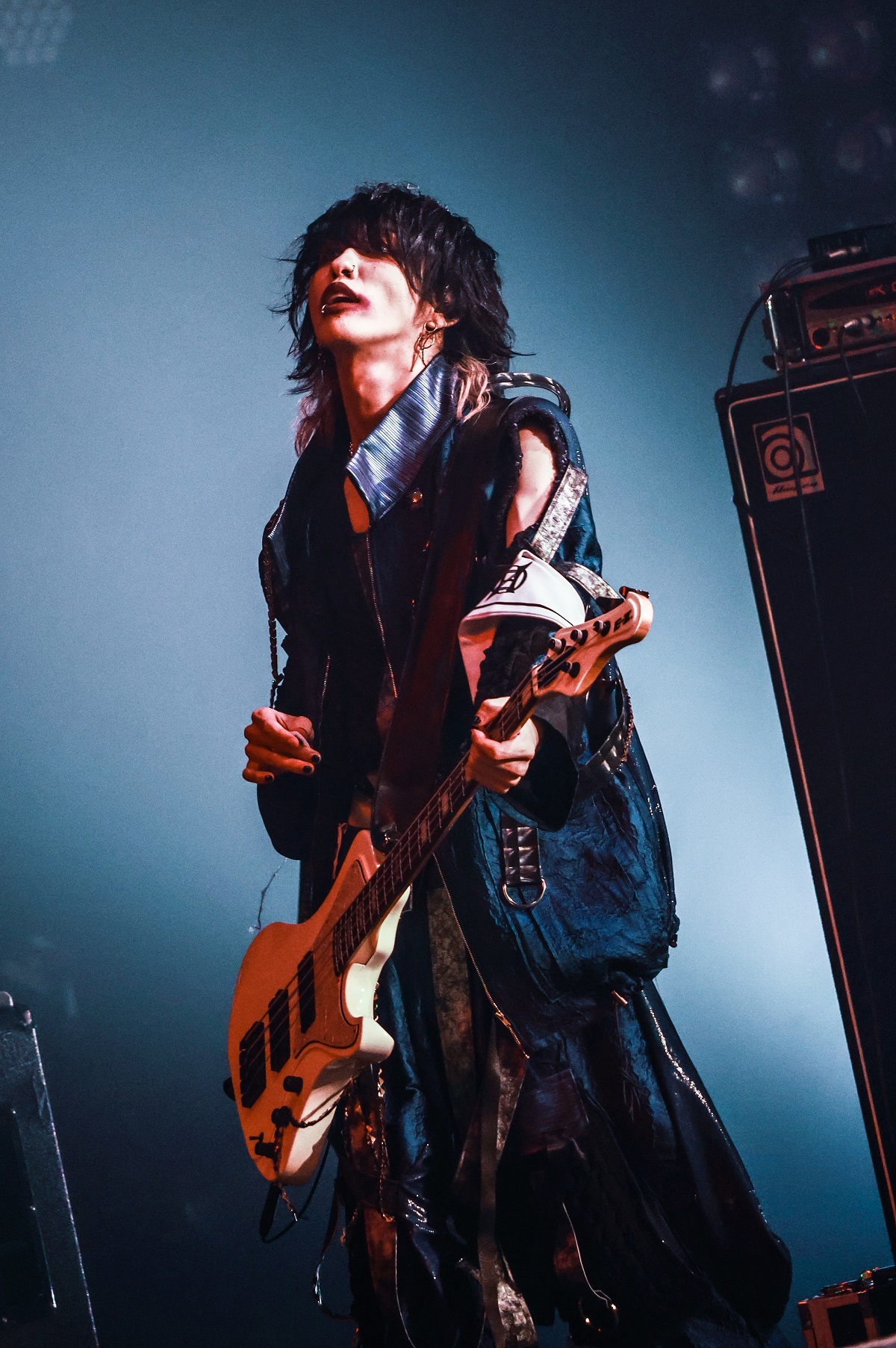 その上で特筆すべきが4曲目の「Lament」。アコースティックの物悲しい調べから、美しさと激しさを沸々と煮詰めていくうち、真緒のボーカルからは愛する人への堪えきれないエモーションがあふれ出して、もはや歌の域を越えて魂の叫びへと昇華する。これほどまでに曲世界に没入し、感情を露わにして哀しみを表現できる歌い手はそうはいないだろう。ラストの「memento mori」でもスピード感とメロディ感を両立させながら、ダメ押しとばかり「生きてるか、東京!」と客席にコール。ジャケットから覗く素肌の胸にマイクをドンドンと叩きつけ、息が詰まるほどの高音で《死にたい生きたいじゃない》と歌い上げて究極まで生と死を突き詰める彼の姿と、“memento mori=死を想え”という言葉の裏にある“今を生きろ”というメッセージに、フロアからは次々に腕が突き上がる。ステージ前方ギリギリまで迫り出してコーラスを入れていた美月は、去り際「RAZOR楽しんで帰ってください!」と一言。大トリを務める盟友へとバトンを繋いだのが熱い。