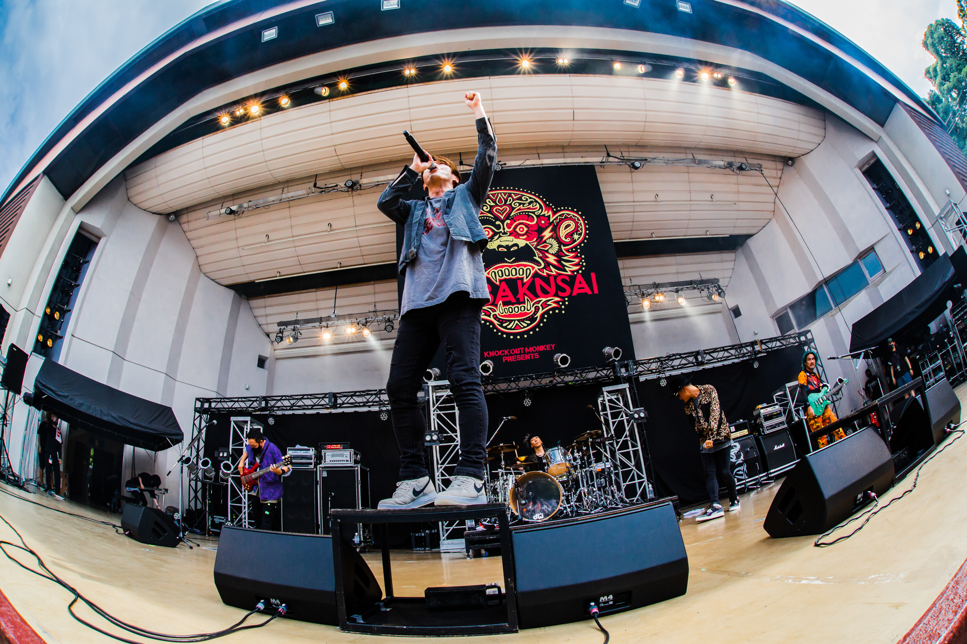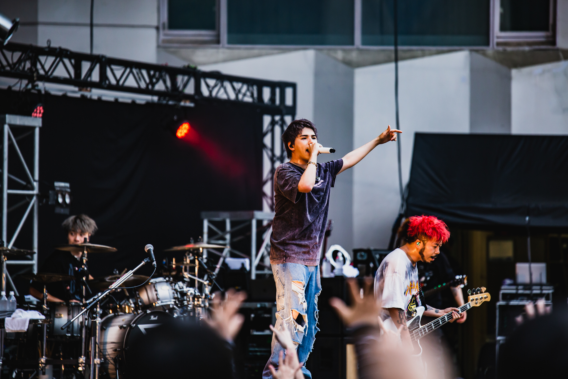 挨拶代わりの「NAME」、合唱代わりの拳が上がった「SADVENTURES」でライブが始まると、空まで響く重厚で壮大なバンドアンサンブルと力強く美しい歌声で会場を沸かせたNOISEMAKER。「思うことがあれば、声を上げ続けろ!」とメッセージを届けた「SPEAK UP」の勇ましいサウンドに、オーディエンスが体を揺らす。MCでは「KOMとは駆け出しの頃から一緒にツアーを回ったり、全国各地で色んな景色を見てきて。こうして野外フェスのすごい景色を一緒に見れて、本当に嬉しいです」と喜びを語り、「次の曲で、『猿爆祭』が10年続いても超えられない沸点を作りますよ!」と宣言したAG。渾身の歌と演奏で披露した「Something New」のアップテンポな曲調に会場中がクラップやジャンプを合わせ、会場を揺らす。