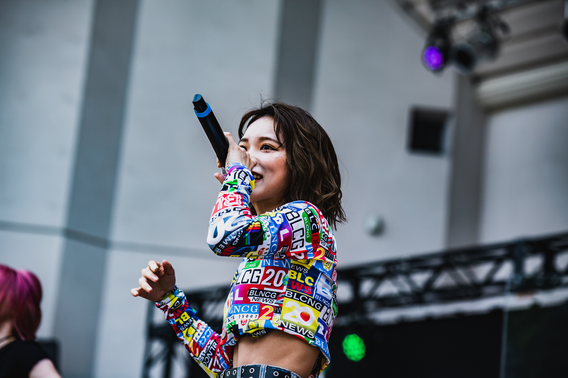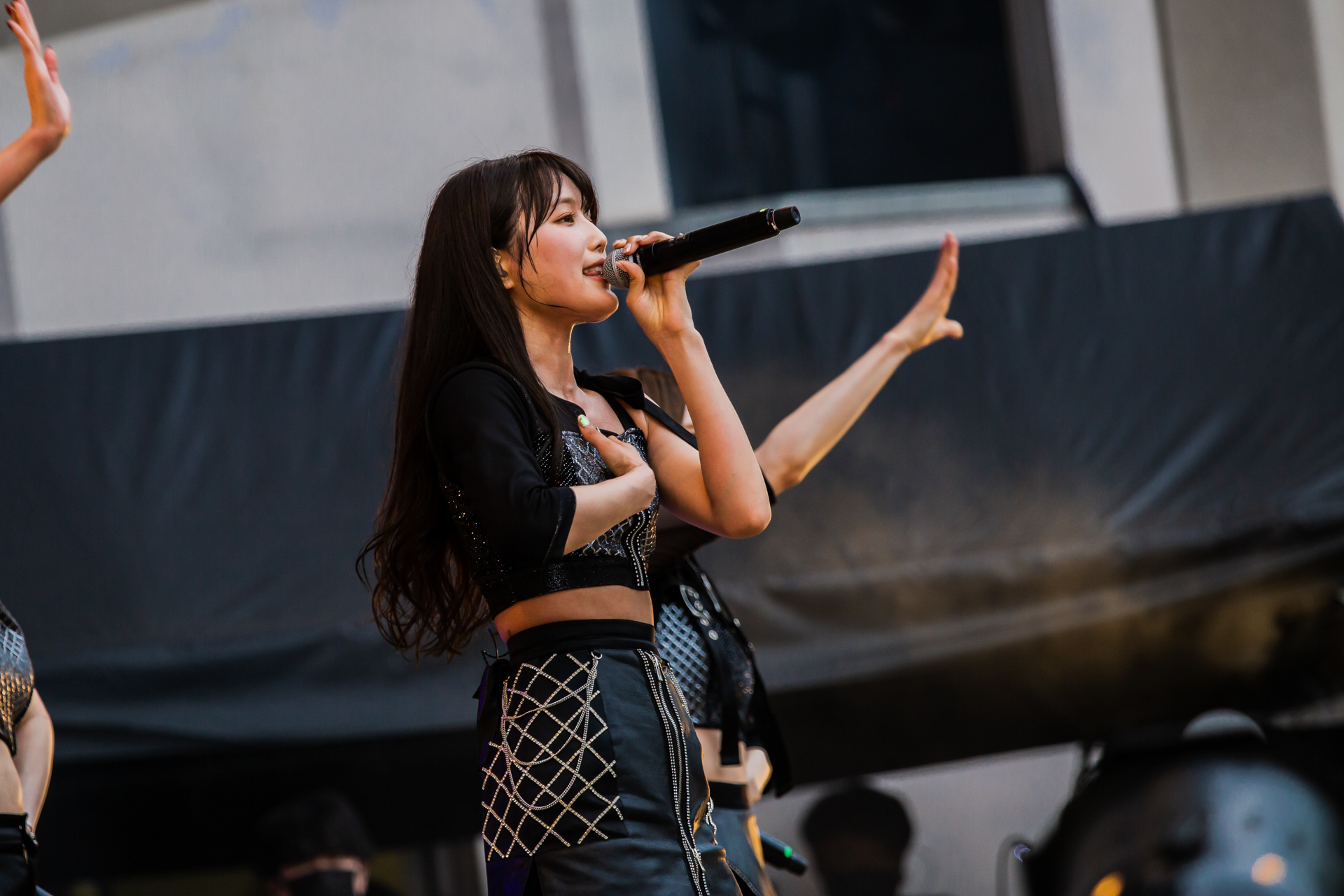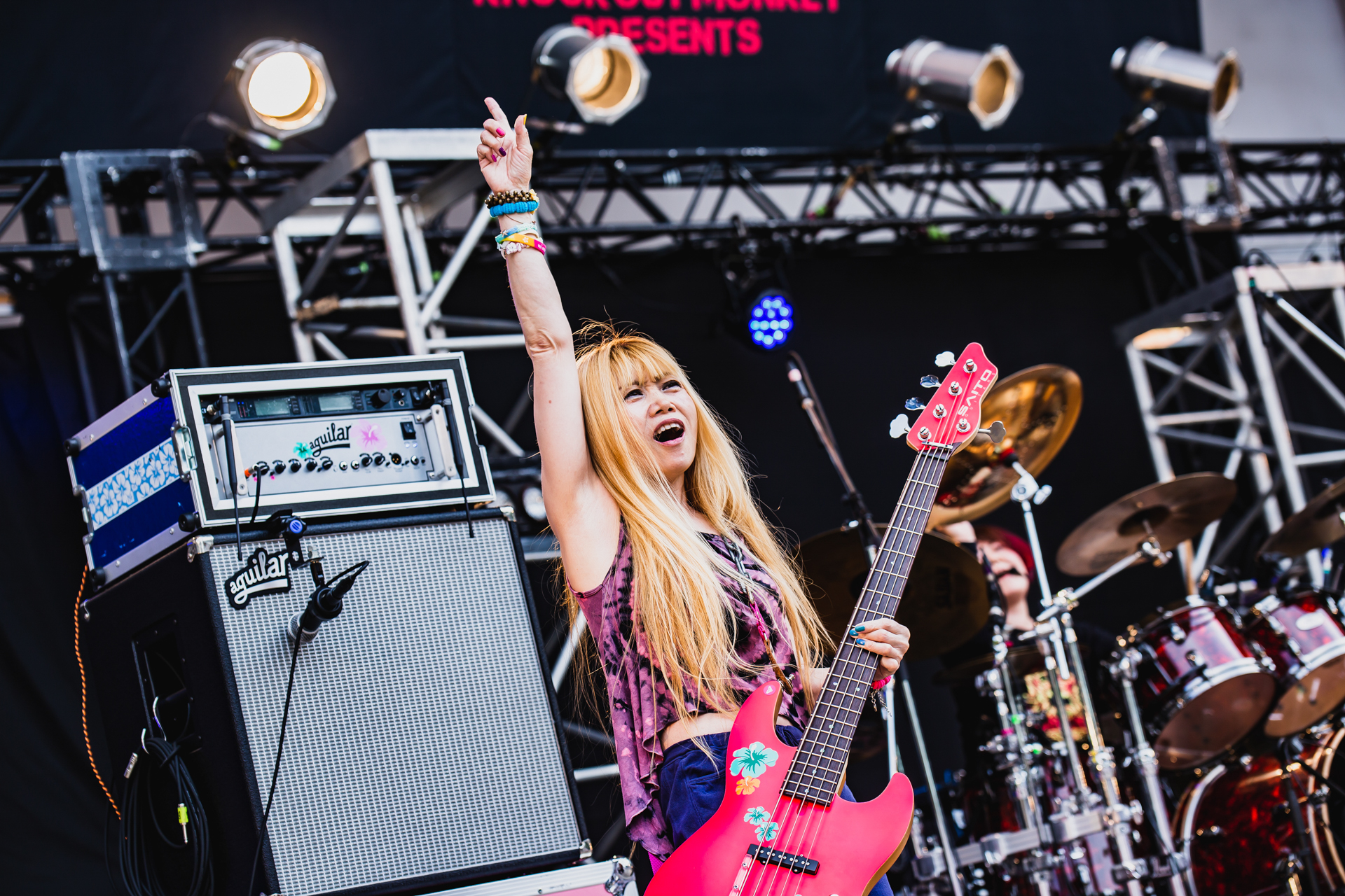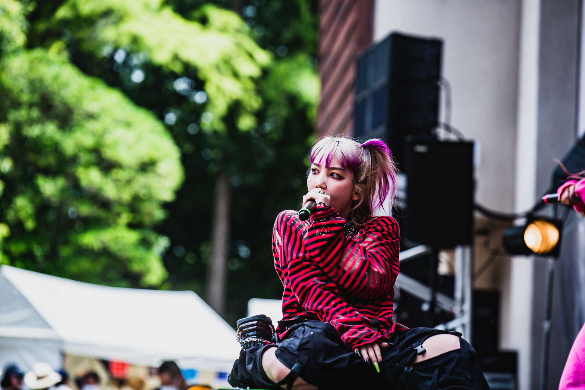 「Freely」、「STARRY SKY」と続き、激しく美しく華麗でドラマチックな自身の世界観と、野外フェスに寄せすぎることのない極上のエンターテイメントを魅せる4人。ライブ後半、<この叫び声いつか 煌めきになりますように>と祈るように歌う「Ray」を披露する頃には、初見の人もPassCodeの楽しみ方をしっかり理解し、4人に気持ちを委ね、手拍子を合わせて、会場に一体感が生まれる。ラストは南菜生が「アイドルという理由で、昔は対バンもたくさん断られました。でもKOMは自分たちの大切なツアーにPassCodeを呼んでくれました。ここで戦っていいんだ、もっと頑張っていいんだと思えたのはKOM兄さんのおかげです」と感謝を告げ、喜びと希望を込めた「It’s you」を披露。初めて観る人にもPassCodeの魅力がしっかり伝わるステージだった。