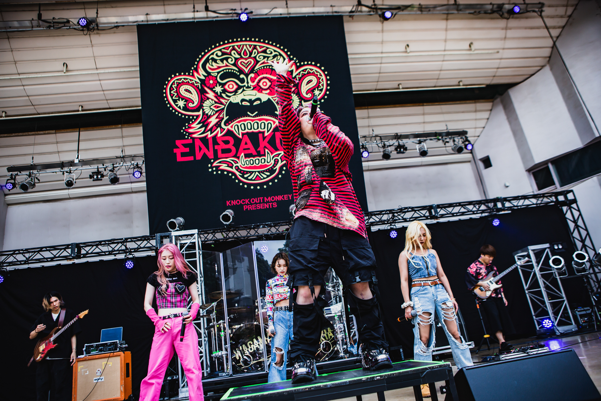 何かを諦めようとしてる人、フザケんな!諦めずに頑張ろうぜ!!」と星熊がメッセージを送り、「SURVIVE」を熱く届ける。アイドルらしからぬ激しくエネルギッシュなステージングと、アイドルらしいキュートさと華やかさを併せ持ち、アイドルやバンドといったボーダーラインをぶっ壊して、オーディエンスの心に火を着けたラキアのライブは、『猿爆祭』のオープニングに実に相応しいものだったし。曇天の空が青空に変わり、いつしか会場に射し込んでいた眩しい太陽の光は、彼女らの熱いライブが引き寄せたとしか思えなかった。