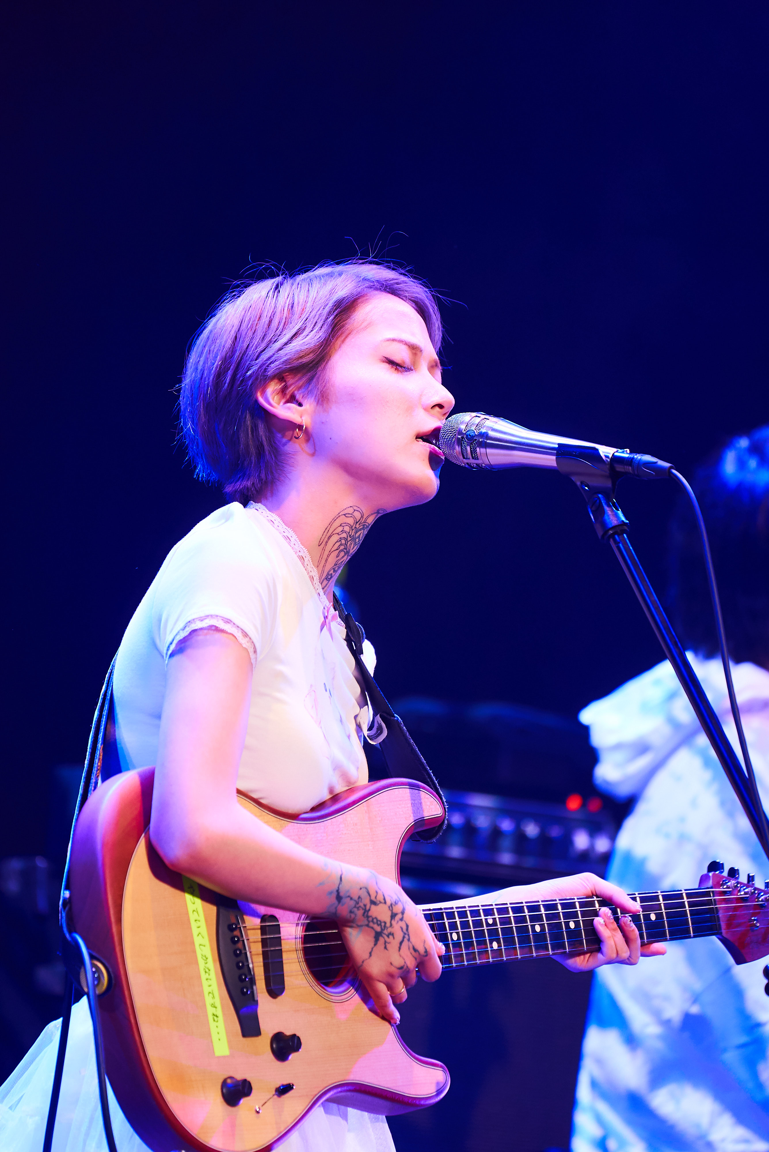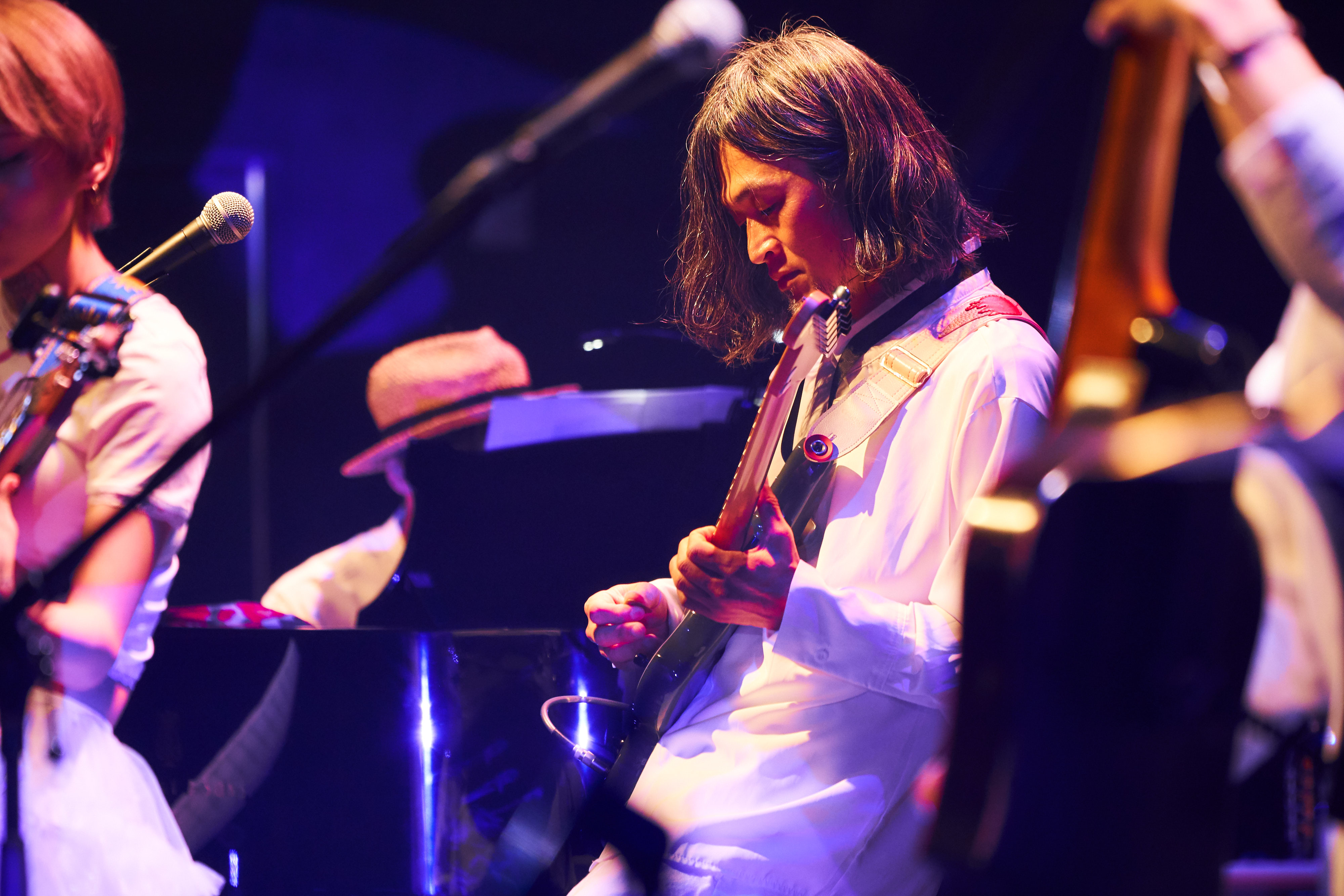 ここからは木下曰く“おしゃれゾーン”。幻想的なバラードの「ひかる」、どこか妖艶で夜を思わせる「悪い友達」と続く。「悪い友達」は去年末にリリースされ、そのミュージックビデオが2週間で150万回再生された、いわば代表曲である。音源では淡々と漂うエレピと洗練されたトラックが印象的であるが、ここでは奥田のエレピを伴奏に、木下がワンコーラスを自分のグルーヴで思いのままに歌い上げるというスペシャルなアレンジで披露。落ち着いた曲調に反比例するかのように、会場の熱量がぐっと上がっていたのが印象的であった。