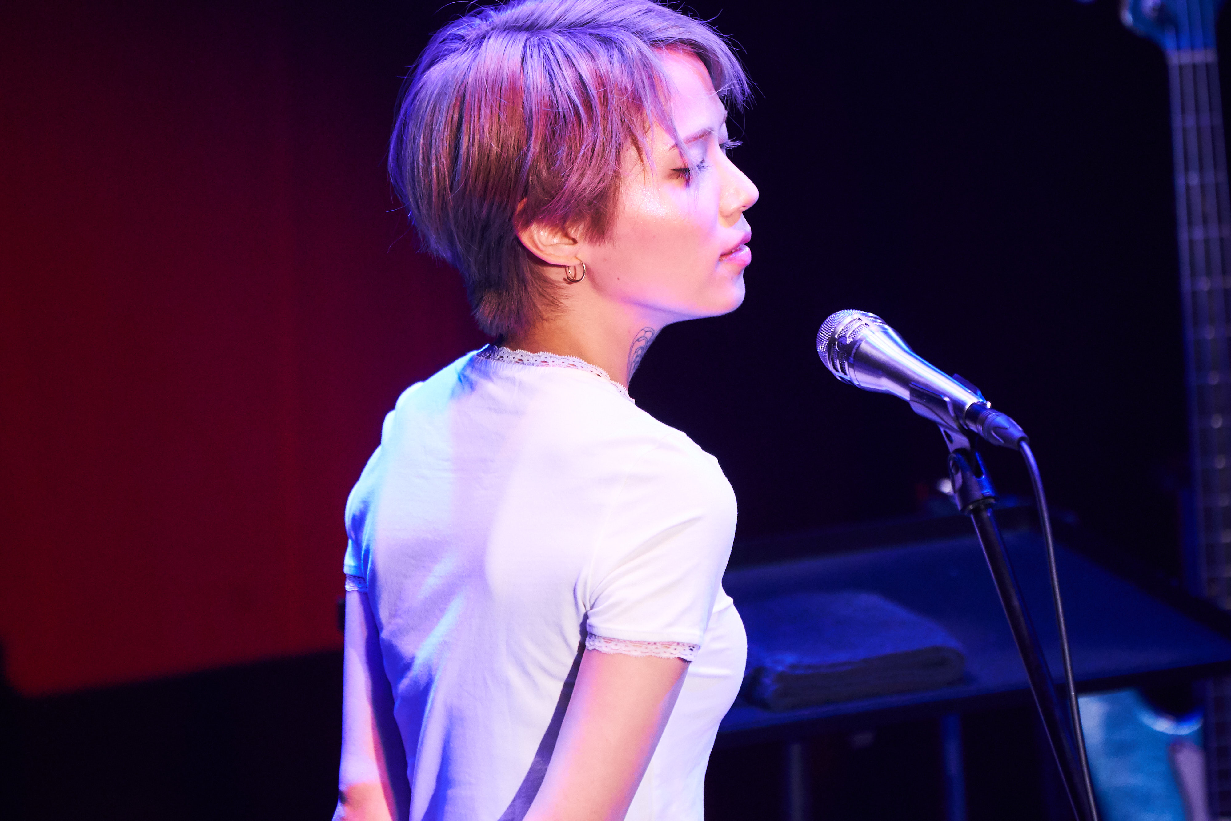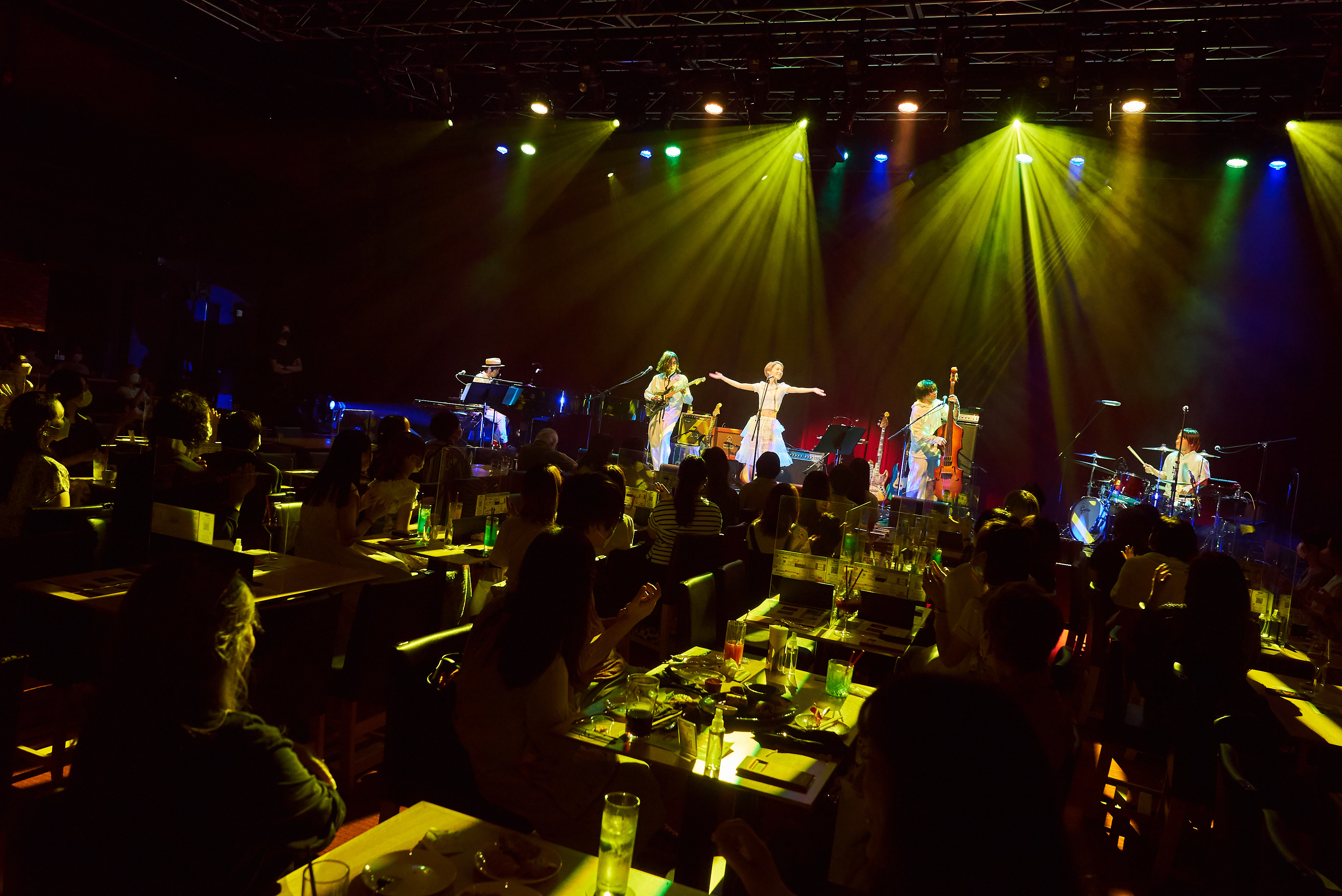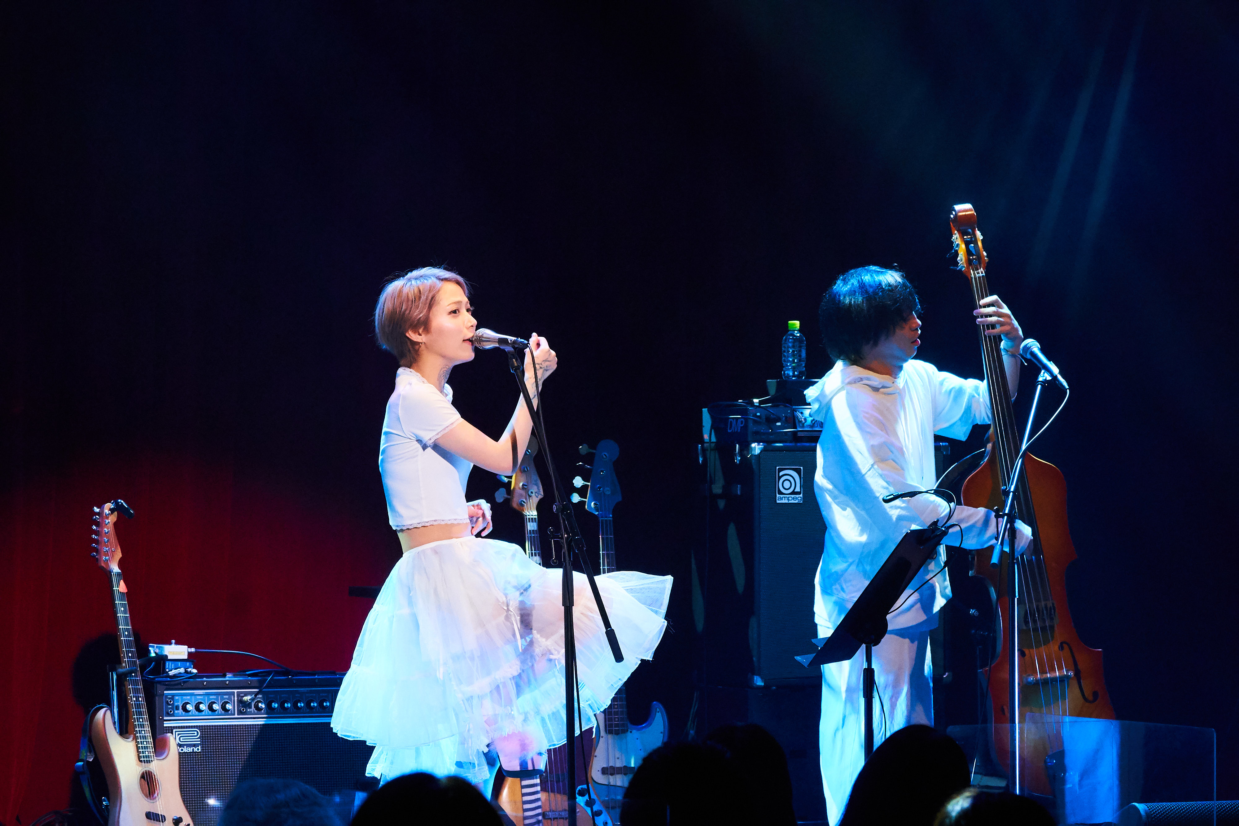 吉澤の4カウントの後、奥田の奏でる繊細なエレピの音色に乗って、真っ白な衣装を身に纏った木下百花が登場。会場は温かい拍手に包まれた。少し緊張したような、はにかんだような様子でマイクの前に立つ木下が、「Billboard Live YOKOHAMA、今日はありがとう! よろしくねー!」 と挨拶した後に歌い始めたのはソロデビュー曲「わたしのはなし。再始動ライブの1曲目にソロデビュー曲を持ってくる、その意味合いはとても大きい。「環境は変われど、自分自身の軸はぶれない。」そんなことを感じさせる幕開けであった。