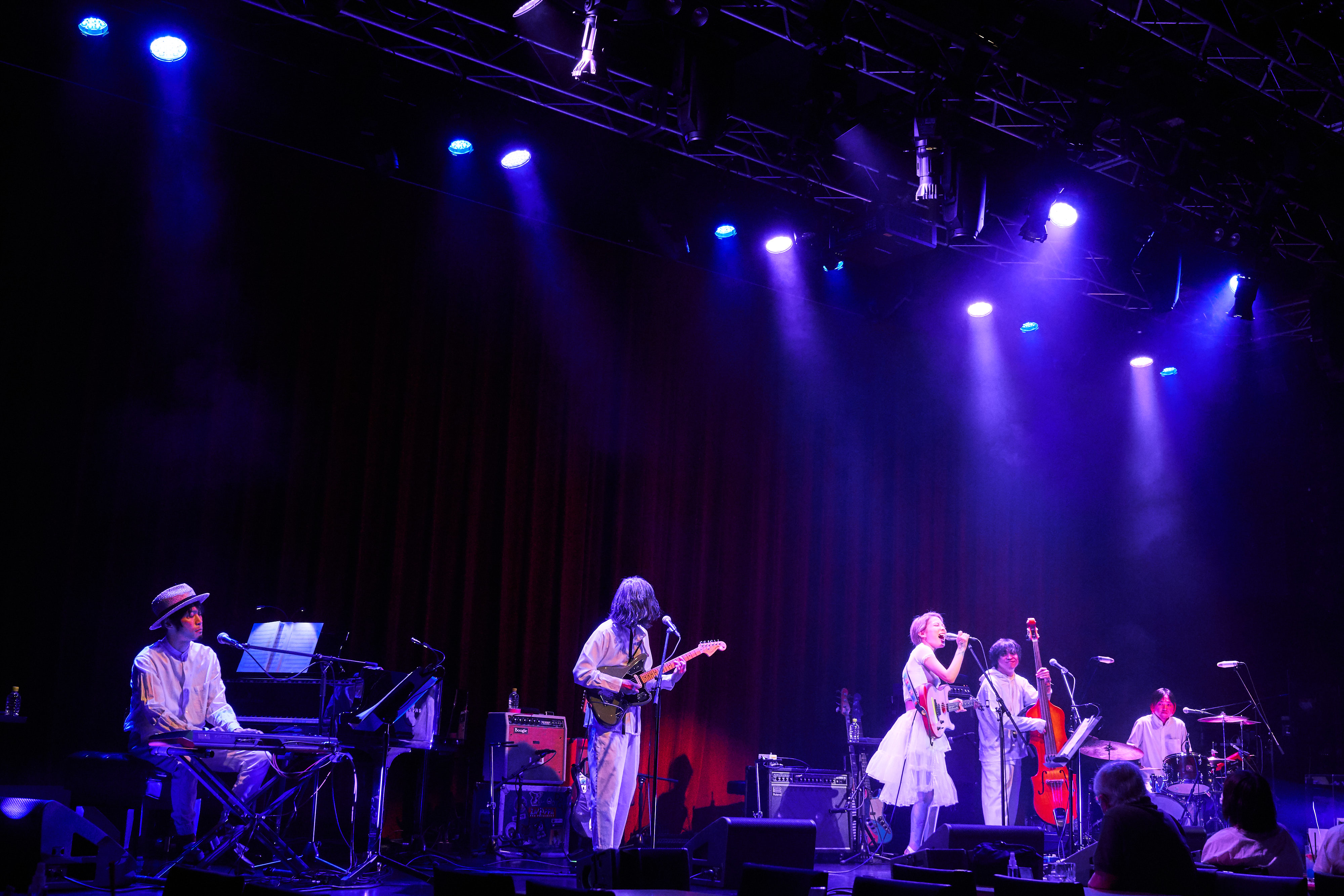 2曲目「5秒待ち」、3曲目「グリルパインベーコンブルーチーズアボカド」と奥田がグランドピアノを演奏し、楽曲はいわば“ビルボード仕様”のアレンジに。短いMCの後、4曲目には新曲「とき・めき・馬鹿・みたい」を初披露。岡部のうねるベースラインに吉澤の変則的なドラムビートと、伊東の小気味良いギターカッティングが絡み合う木下流のダンスナンバーだ。これまでと一味違った楽曲のテイストが、再始動までの5ヶ月間の充実ぶりをうかがわせた。