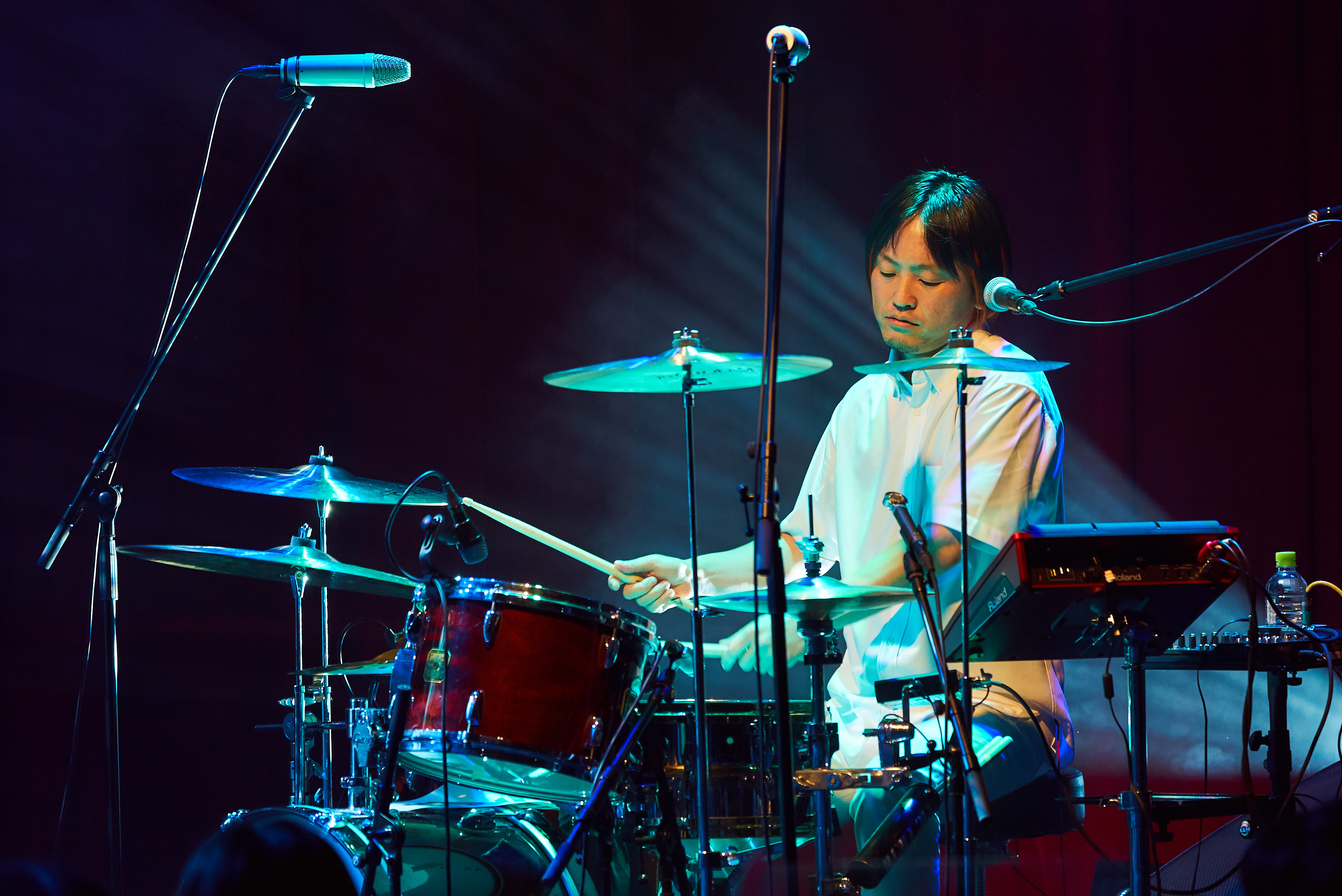 いよいよ開演の時間。会場BGMの音量が絞られ、客電が落ちると、無音のままサポートメンバーが登場する。この日のバンド編成は、これまでも木下とライブやレコーディングをともにした、ギター・伊東真一(HINTO / SPARTA LOCALS)、ベース・岡部晴彦、ドラム・吉澤響(セカイイチ)の3人に加え、鍵盤・奥田健介(NONA REEVES)を迎えた特別編成である。