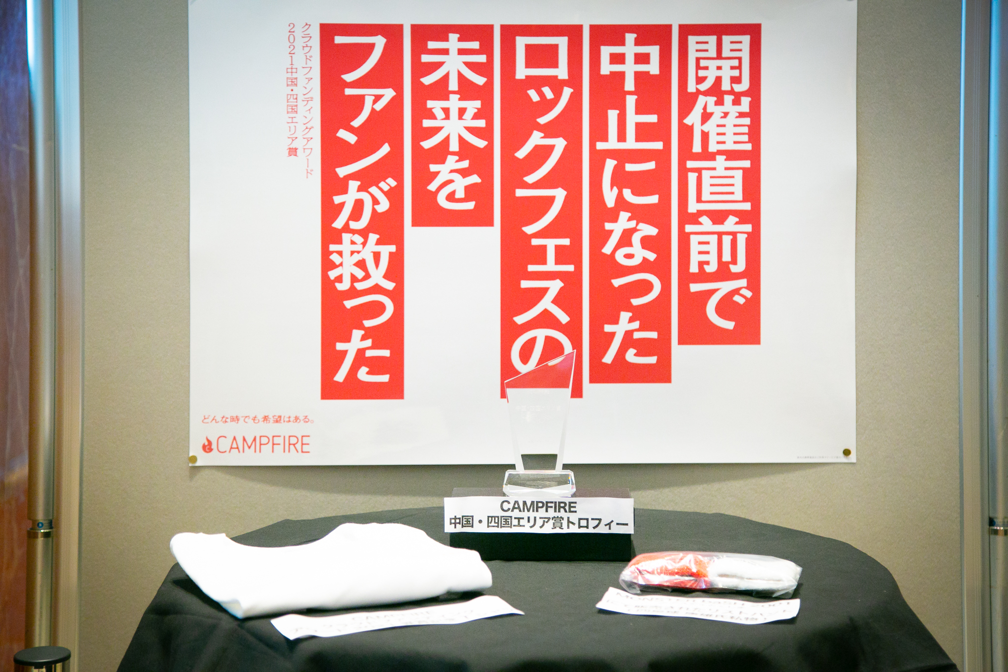 実は、モンバスが一番中止の判断に時間がかかってしまったんです。他のフェスは開催のひと月前とか、準備に入る前のタイミングで中止を発表していたんですけれど、自分たちはずっとやる気だったので4日前になってしまいました。2週間連続でやる大型のフェスを4日前に中止すると何が起こるかというと、まず用意した数万人のお客さんのためのグッズがまんのう公園にたまってしまうんですね。1週目でさばくはずのもので一杯になってしまって2週目の分を送れないということになってしまった。「それが残念です」という話をしていたら、沢山の方から「クラウドファンディングをやってみたらどうですか」と言っていただいた。調べてみると、これはなんとか前を向けるような材料だとも思いましたし、来れなかったお客さんからもメッセージやお手紙をいただいていましたので、「よし、やってみよう」と思って、すぐにクラウドファンディングを立ち上げました。「来年以降のモンバスを守るためにみなさん助けてください」というコンセプトで始めたら、当初の目標の1千万円を数時間で達成して、結果的には4千720万円の支援金が集まった。CAMPFIREというクラウドファンディングサイトで「CAMPFIREクラウドファンディングアワード2021 中国・四国エリア賞」をいただいたり、「開催直前で中止になったロックフェスの未来をファンが救った」という言葉でポスターにしていただいたりして。それは大きな糧になりました。
