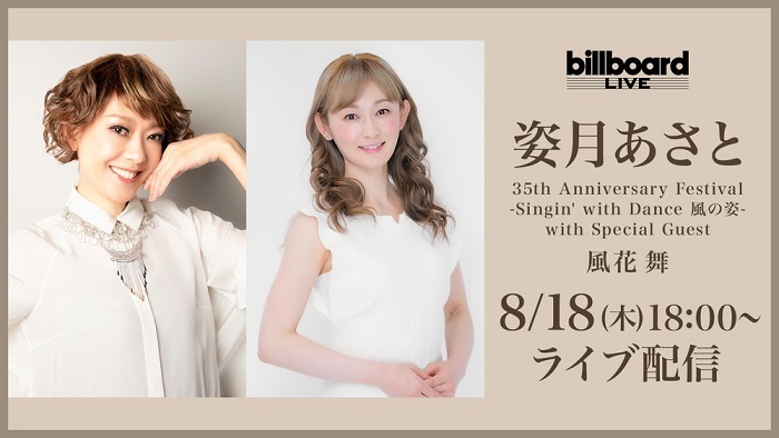 2022年8月18日(木)ビルボードライブ横浜で行われる『姿月あさと 35th Anniversary Festival -Singin' with Dance 風の姿- with Special Guest 風花舞』公演の2nd ステージが、「Rakuten TV」にて生配信されることが決定した。