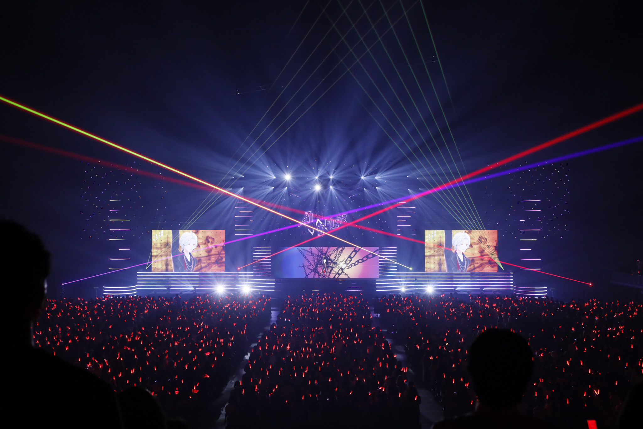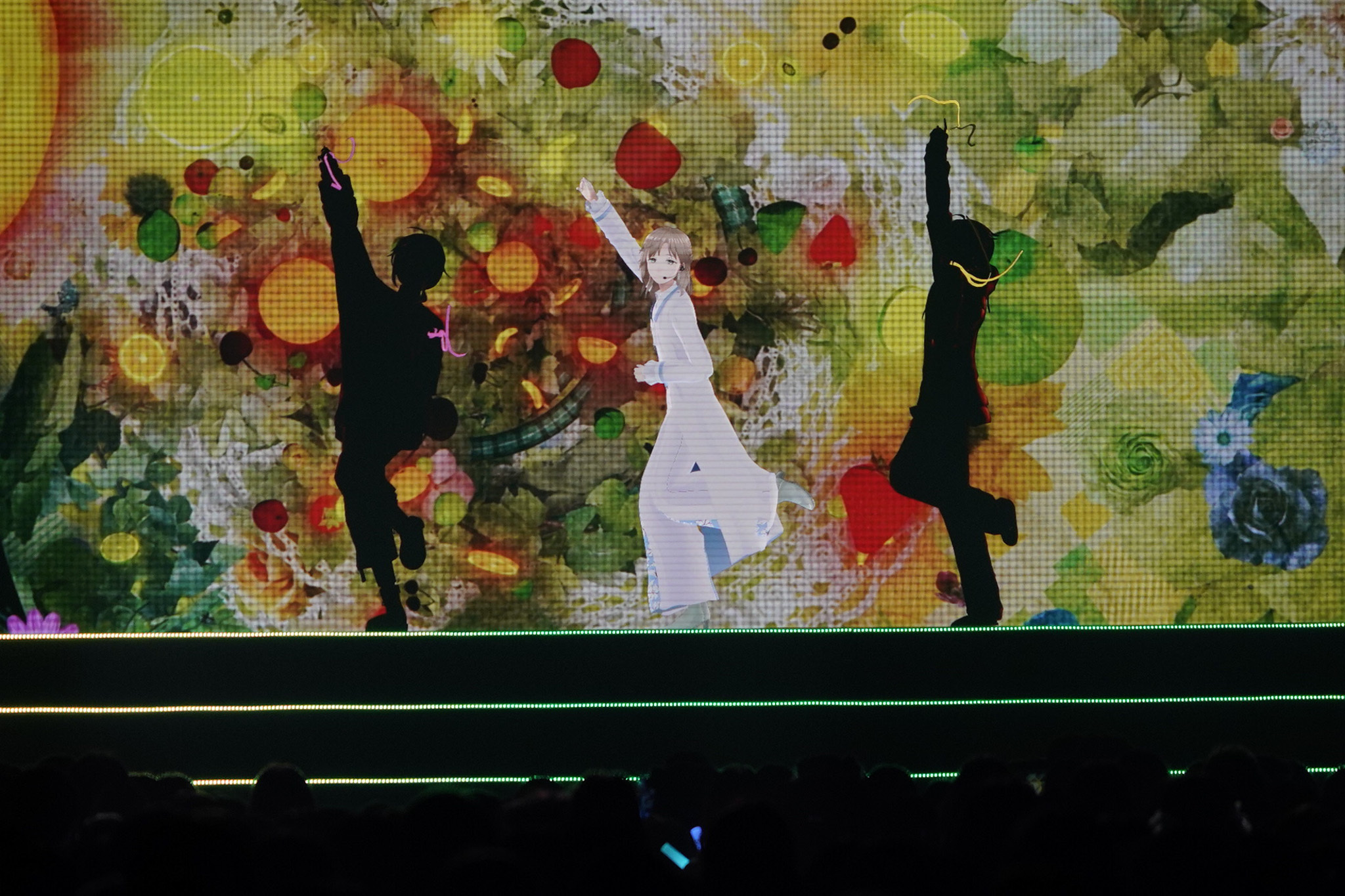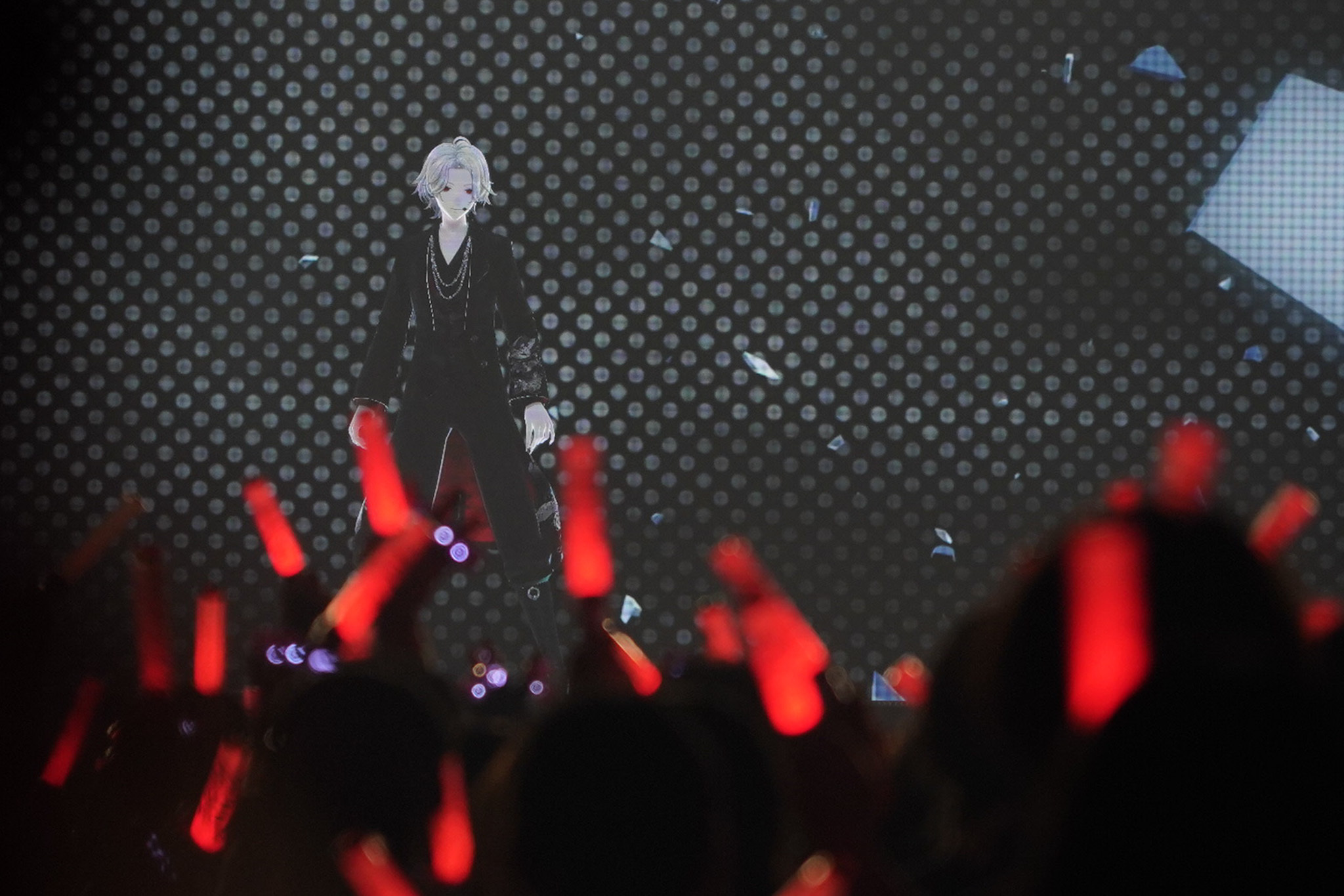 しばらくして、オープニングの映像が画面の中央スクリーンに流れ始める。10から1までのカウントダウンのたびに高鳴っていくジングル。客席のペンライトは思い思いの「推しライバー」のカラーで染まり、照明が落ちた会場を銀河のような美しさで彩っている。