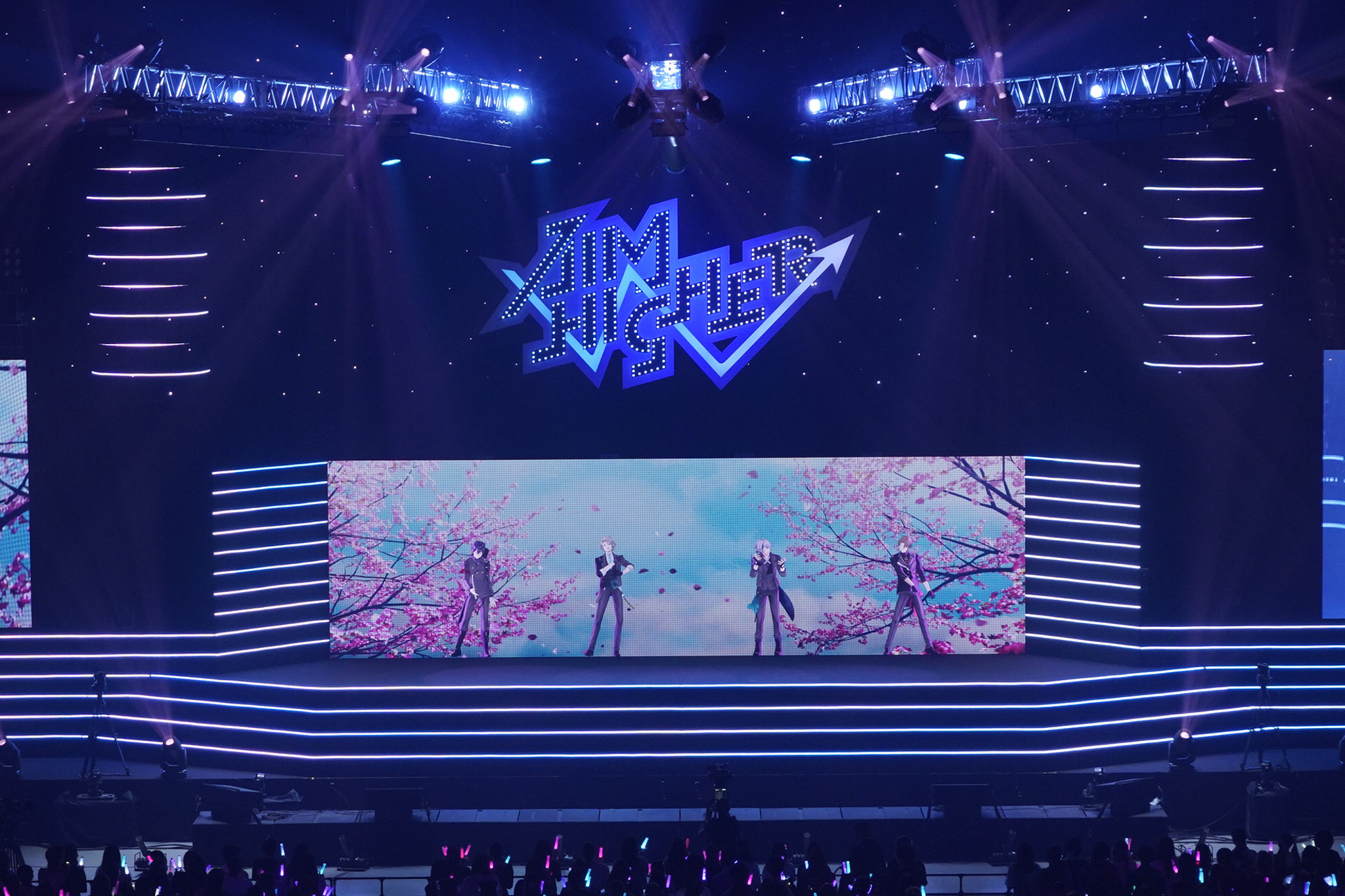 2022年7月27日(水)、横浜・ぴあアリーナMMにて『Kuzuha & Kanae & ROF-MAO Three-Man LIVE「Aim Higher」』が開催された。「にじさんじ」に所属するバーチャルライバーである葛葉、叶、そしてROF-MAO (加賀美ハヤト・剣持刀也・不破湊・甲斐田晴)の、6人・3グループによる3マンライブとなる。会場は1階席から4階席まで埋まり、立ち見客まで並ぶほどの超満員。また各出演者の冒頭の一部無料(シリアルコード購入で全編視聴可能)で配信されたニコニコ生放送にも、画面を埋め尽くすほどの大量のコメントが寄せられていた。バーチャルライバーならではの演出や自由なトーク、アイドルさながらのステージは興奮必至。その圧倒的なパフォーマンスをレポートしていく。