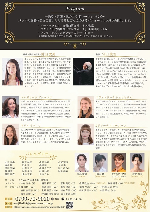 ウクライナ独立記念日となる8月24日に合わせ、世界平和への祈りを込めた生演奏、歌、バレエ公演『Souls For Peace』が開催される。