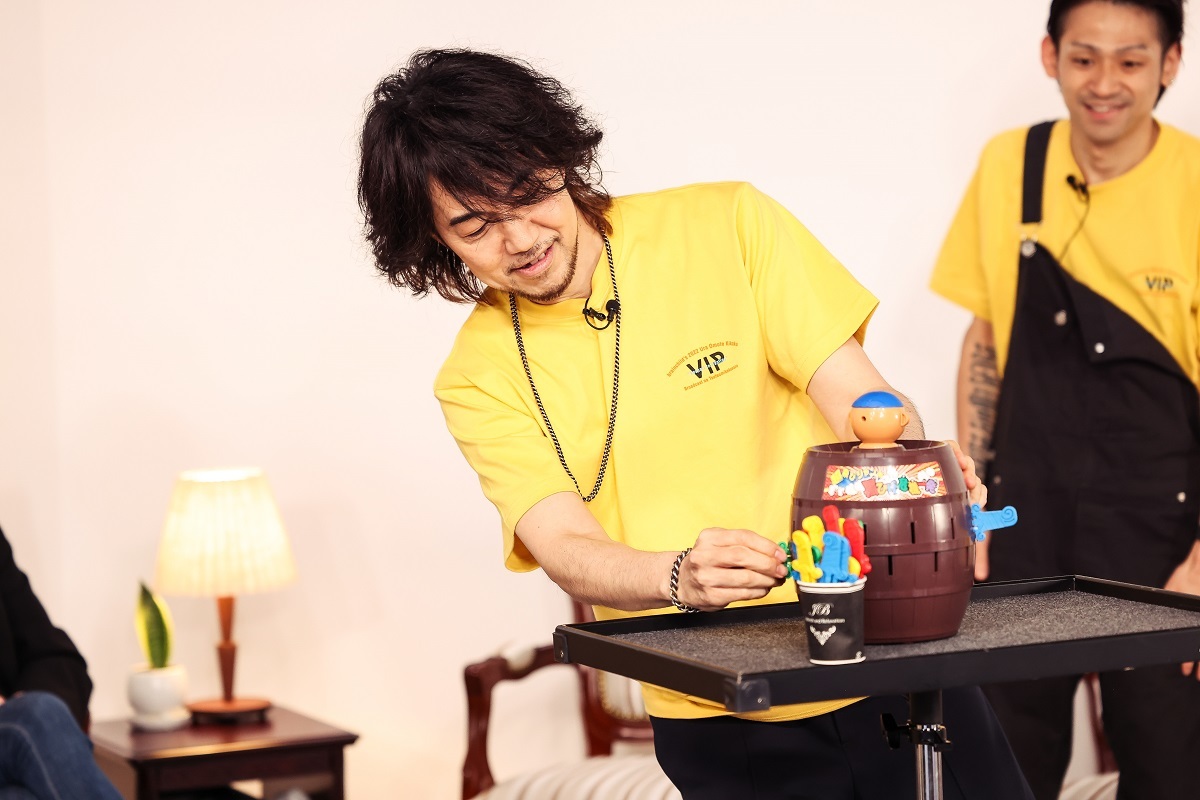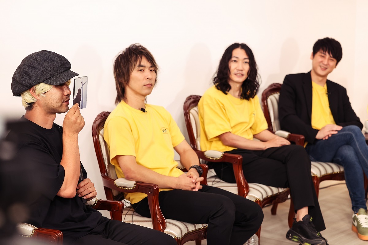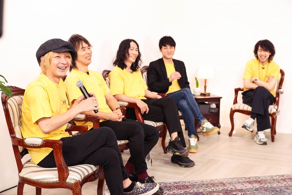 2022年夏、菊地英昭率いるbrainchild'sがふたたび活発な活動期を迎えつつある。7月25日に『brainchild's Ura Omote 会員サイトスペシャル企画』として生配信された「brainchild's 2022 Ura Omote Kikaku VIP Broadcast na Tsutsumikakusazu“Veshari In Panties”-Namadutsumi Edition-」はその一環として行われたもので、参加メンバーは菊地英昭(以下、エマ/Gt,Vo)、Keita The Newest(以下、Keita/Gt,Vo) 、早川誠一郎(Dr)、秋野温(以下、Nokia/Gt,Vo) 、MAL(Key) 、渡會将士(Vo,Gt)、神田雄一朗(Ba)、岩中英明(Dr)という、バンドの中核を担う主要メンバーたち。都内某所にある配信専用スタジオ「eplus STUDIO」から中継されたトークイベントの模様を独占潜入レポートする。