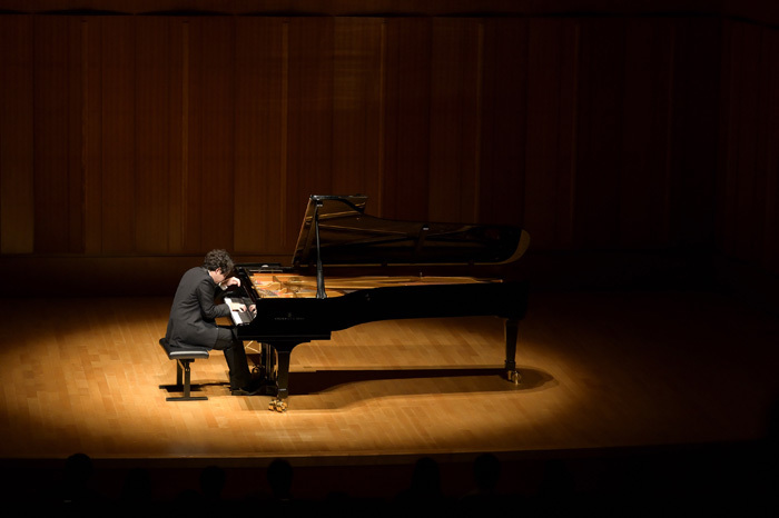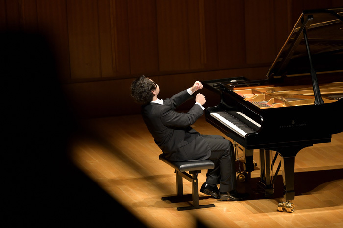 プログラムの後半は、少しだけ “玄人好み” の作品で始まった。ショパンの「24のプレリュード」から 第13番 と終曲の 第24番。まず、第13番では、息の長いダイナミクスでじっくりと旋律を歌い、”ノクターン” や ”舟歌” を思わせるたおやかな旋律が醸しだすふくよかな余韻を会場空間に響き渡らせる。雨のしずくが滴るように細部まで緻密にコントロールされた美しい音の粒も印象的だった。続いて、激しいパッションに満ちた第24曲へと突入。冴えわたる技巧を惜しみなく披露し、みなぎる集中力で激情を力強く表現した。