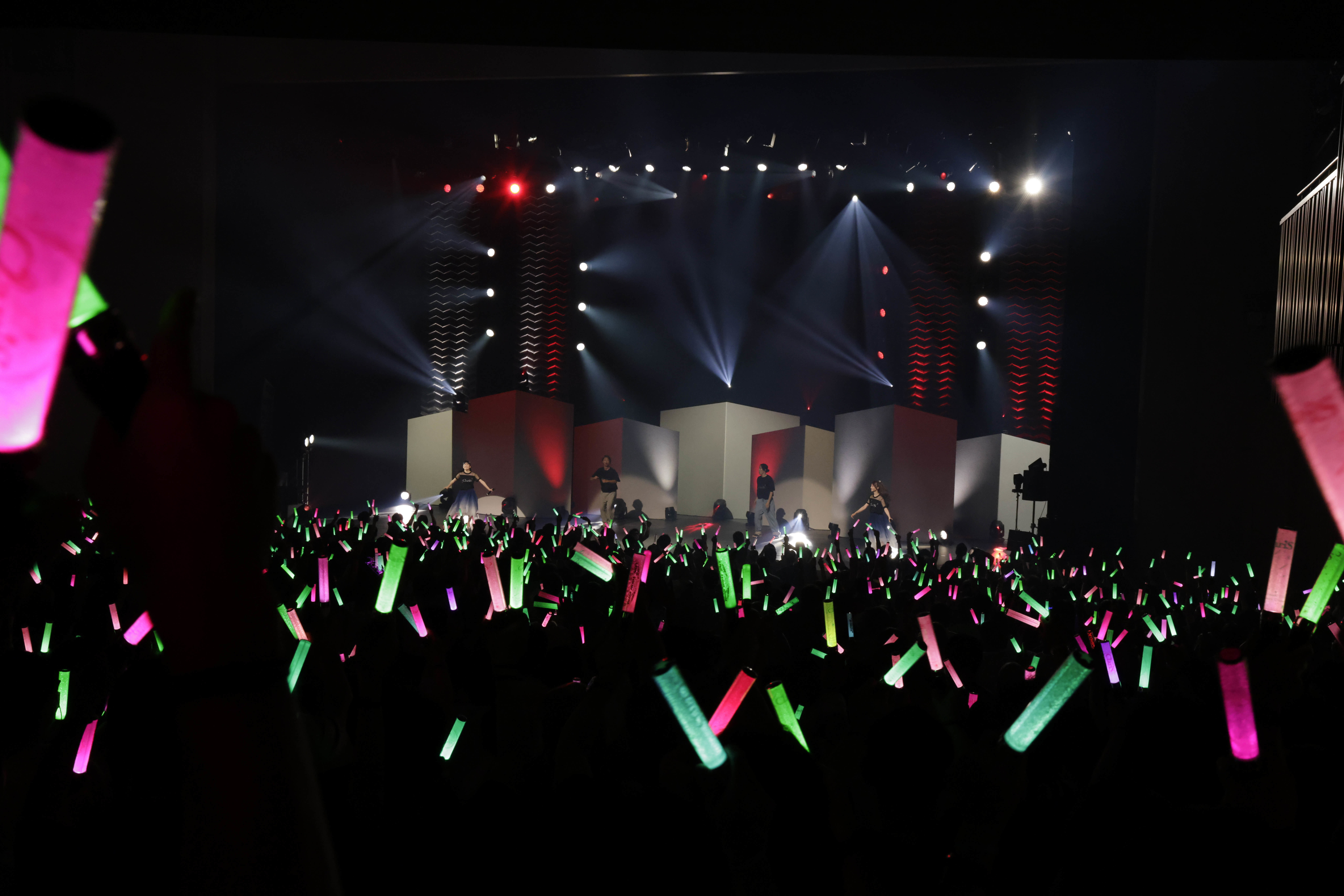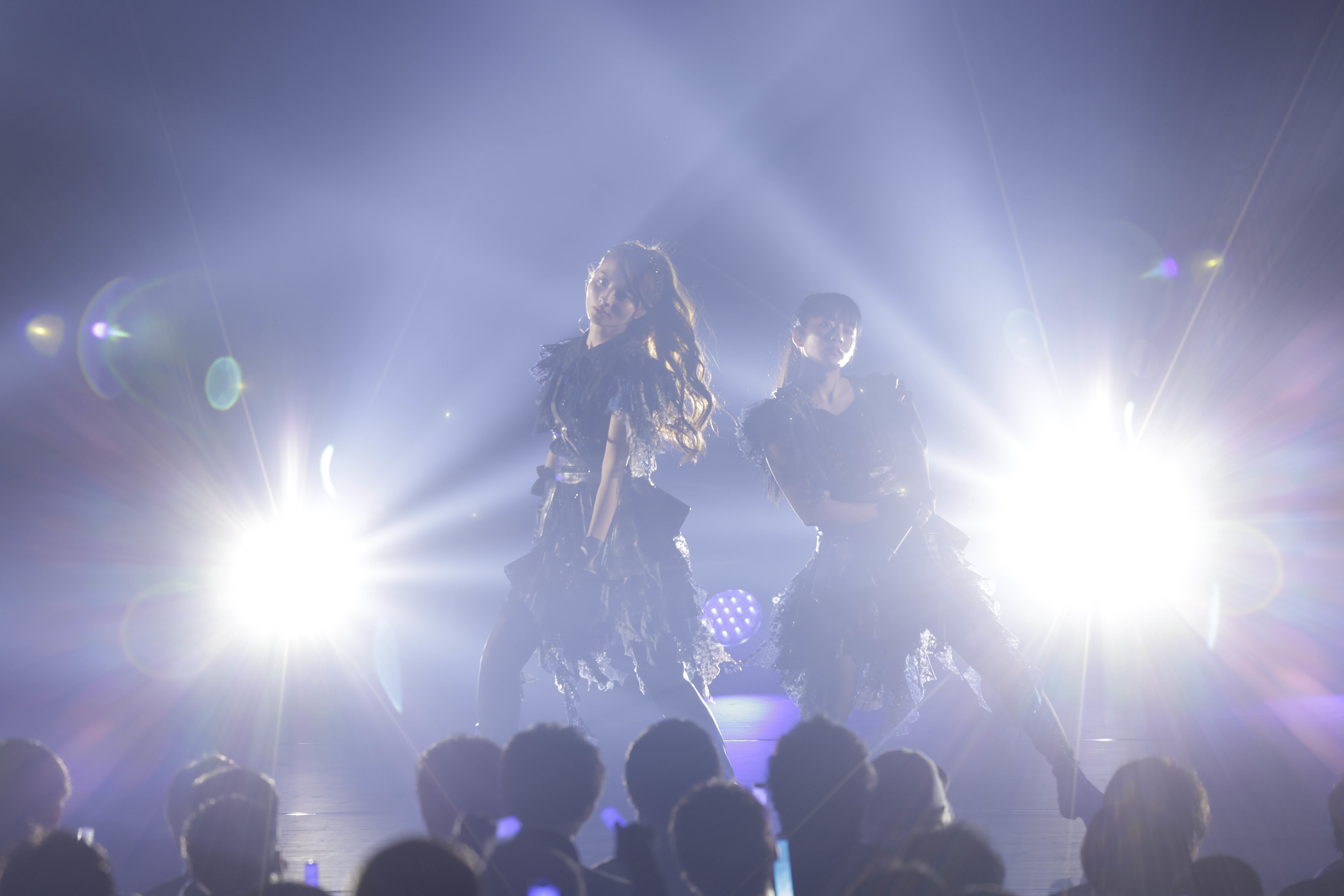 そしてアンコール。グッズのTシャツをあしらった涼し気な衣装でステージに戻って来た二人が、ダンサー二人を従えて歌い踊るは「ナイショの話」。明るくはじける二人の笑顔に、無事に本編をやり切った安堵がにじむ。だがまだライブは終わらない。