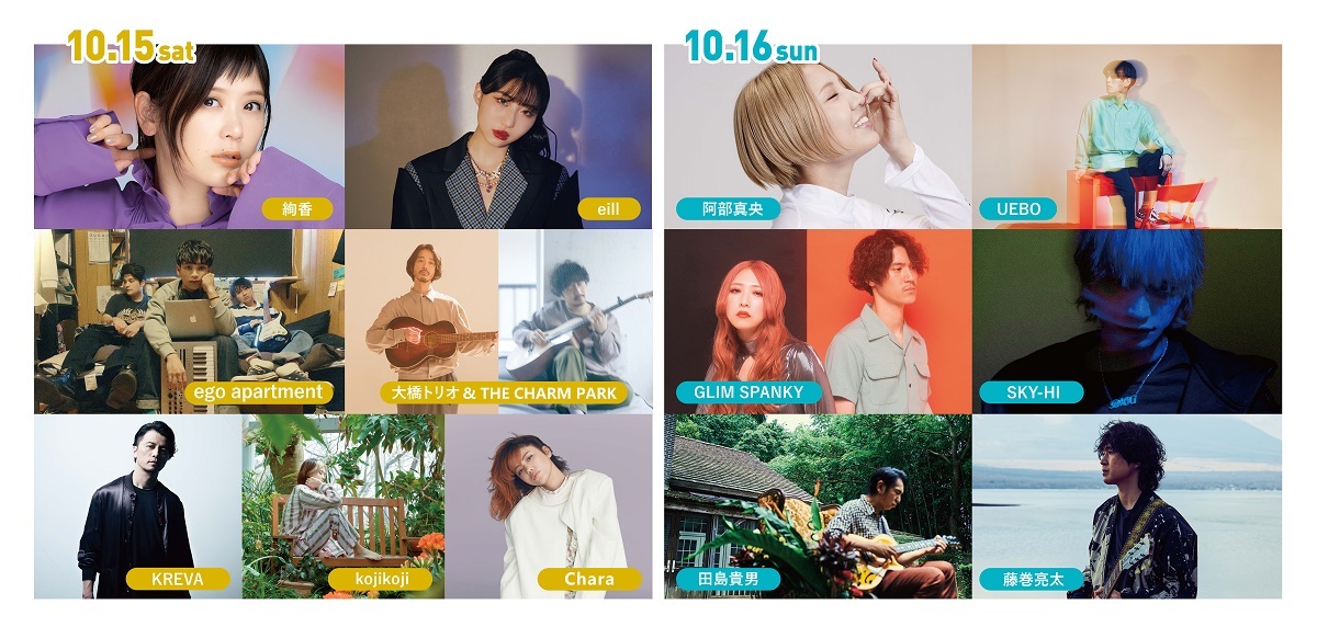『Chillin’ Vibes』は、「MUSIC&RELAX」をコンセプトに自然の中でシートを広げてゆったりと音楽を楽しむピクニックスタイルのミュージックフェス。このほど発表された追加出演者は、ネクストブレイクアーティストとして注目の関西在住3人組ユニットego apartment。そして各日の出演者は、10月15日(土)に絢香、eill、ego apartment、大橋トリオ&THE CHARM PARK、KREVA、kojikoji、Chara。10月16日(日)には阿部真央、UEBO、GLIM SPANKY、SKY-HI、田島貴男、藤巻亮太が出演する。