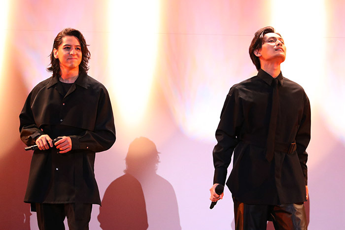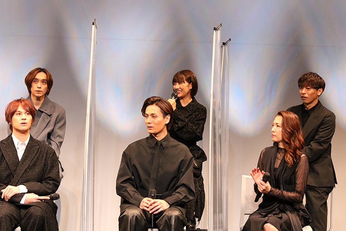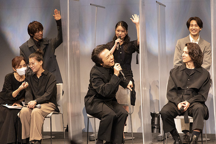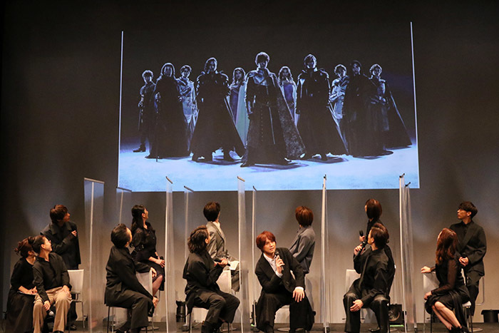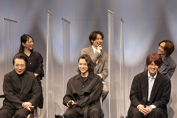 ここで衣装を身に纏ったビジュアルが公開され、キャスト陣も「かっこいい!」と大盛り上がり。「前田さん(編集註:衣装の前田文子)の衣装って、袖を通すと物語を感じられるんです。これを着て踊って殺陣をするのはハードルが高いと思いますが、すごくキラキラした派手な舞台をお見せできると思う」と話す浦井に、伊礼も「これは衣装の展覧会をした方がいいですよ。皆さんにも見て、触って、着てもらいたい」と、細部まで作り込まれた衣装のクオリティに太鼓判を押す。