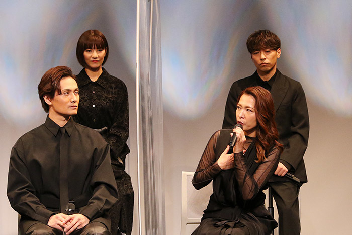 ビジュアル撮影の感想を聞かれると、安蘭が「健ちゃんが言うように、衣装が役に入らせてくれた」と話す。宮澤は「結構タイトでラインが出る衣装だったので、5日間断食をして臨みました」と明かしキャスト陣から驚きの声が。小南は「“舞台上でリアルに存在する”と言うポリシーのもと、こだわりを持って繊細に作られた衣装だそうです。ライトが当たったらもっと美しく見えるんじゃないかと仰っていたので、ぜひ注目していただきたいです。風を当てていただいたりして、良い気分で撮影しました(笑)。かっこよく撮っていただいて、皆さん強そうに決まっていますね」とビジュアルを絶賛。