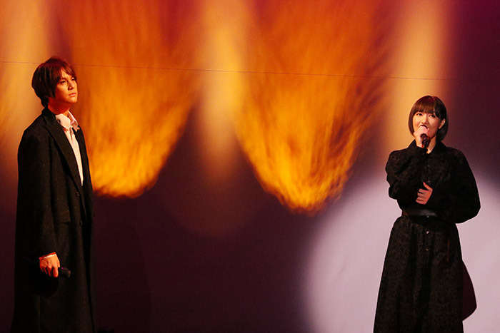 歌唱披露の1曲目は、アーサーに王座も婚約者も奪われたメレアガン(伊礼彼方/加藤和樹)が胸の内にある怒りを歌う「奪われた光」。伊礼と加藤は闇を感じさせる耽美なメロディに激しい憎悪や絶望といった熾烈な感情を乗せ、ハイトーンのシャウトを混じえて歌い上げる。