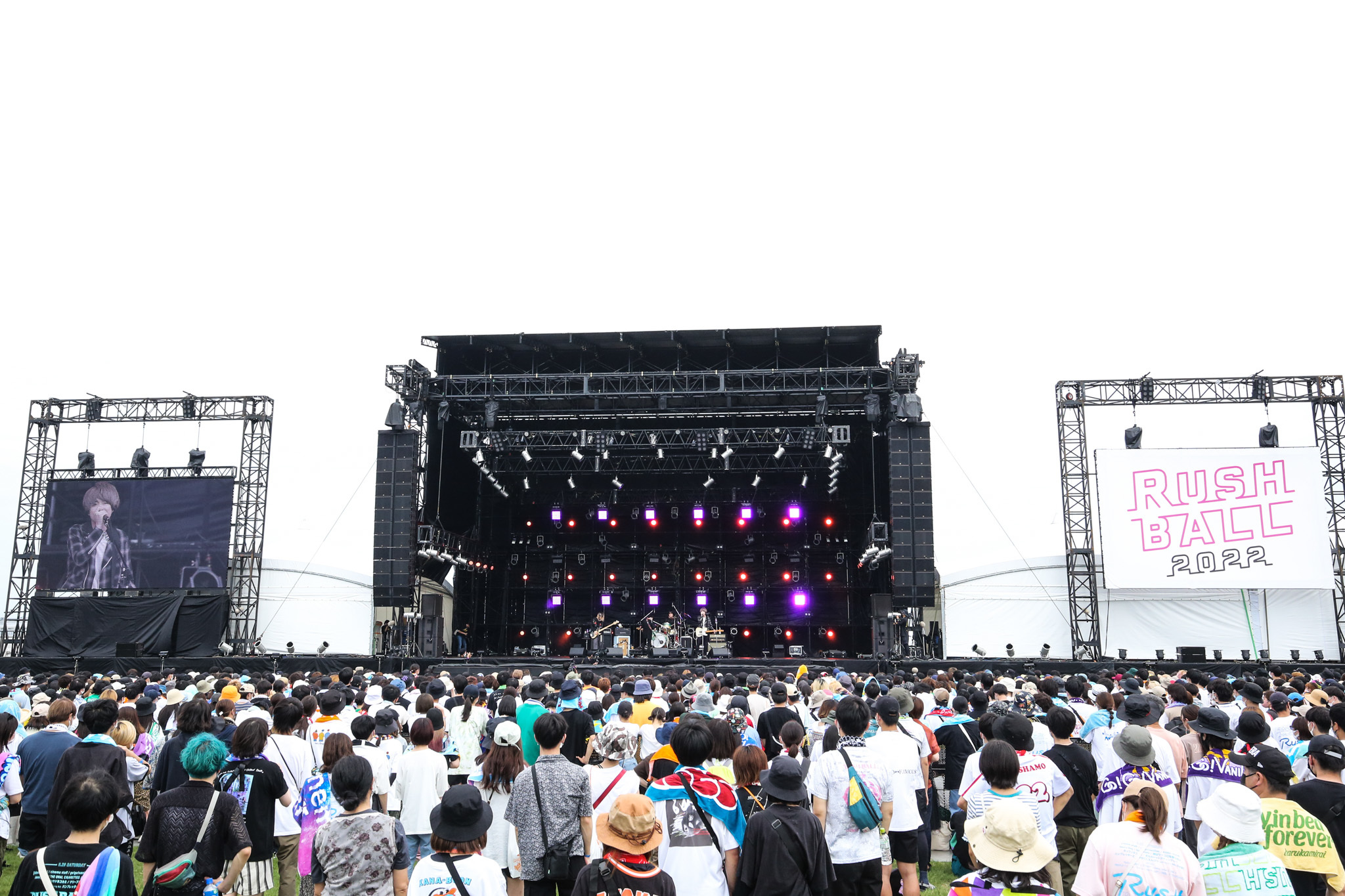 そう、一期一会の今に立ち会えた奇跡を改めて言葉にし、「storyflow」では壮大な音世界を創出。硬軟自在のサウンドメイクに、魅入られたように聴き入るオーディエンスの姿が何とも印象的だ。続く「GATE」でもきらめくフレージングにのせ、飯田と三島の渾身のハーモニーが心を揺さぶり続けていく中、いよいよラスト「3.28」へ! ロックの猛者たちが集う『RUSH BALL』において、改めてライブバンドたる強靭な体幹を見せつけたcinema staff。その実像以上に大きな音像を感じさせる、濃密なアクトとなった。