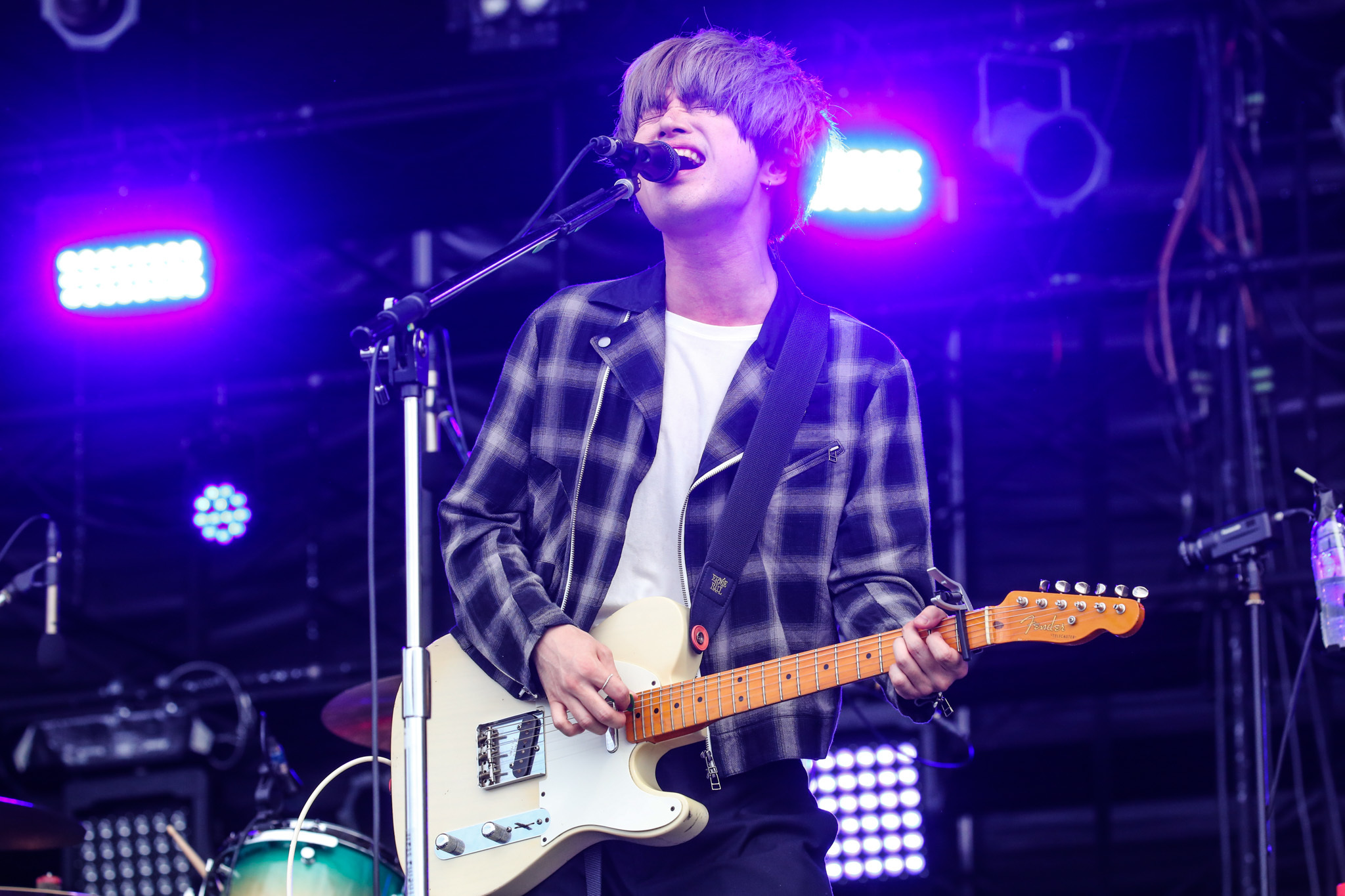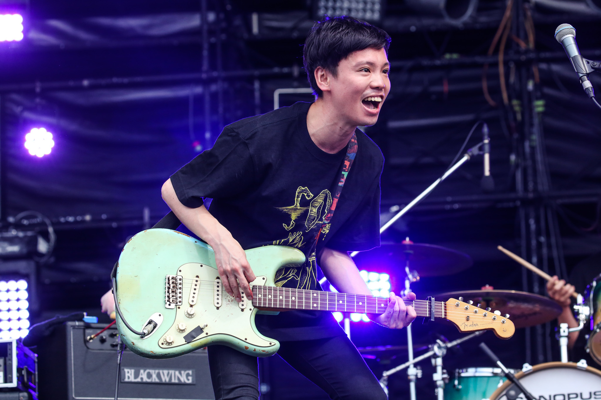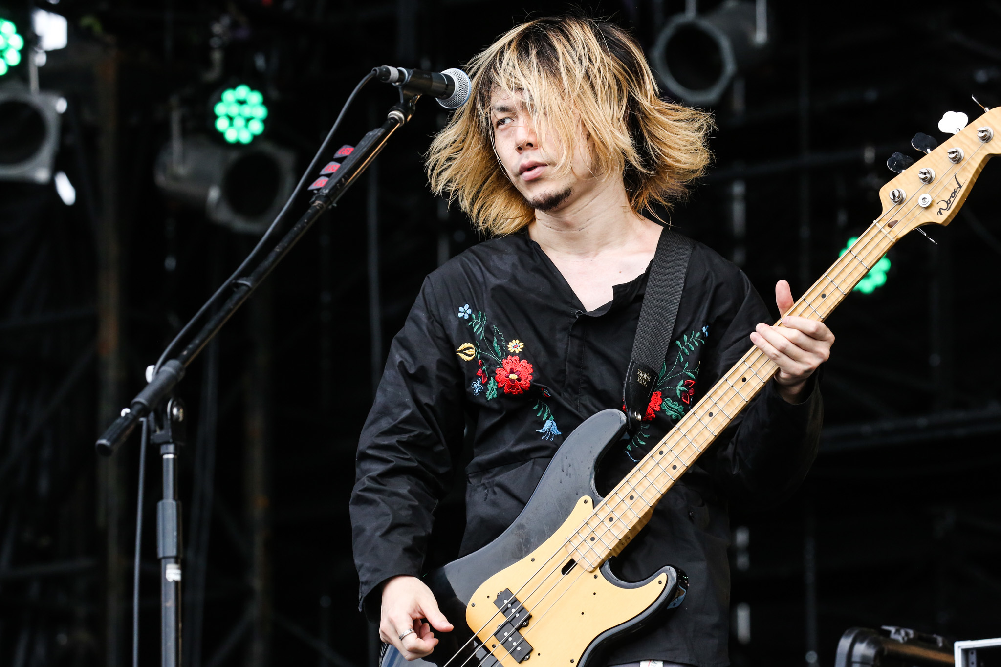 ド頭からメジャーデビュー曲「into the green」を鳴らし、フロアを沸き立たせたのはcinema staffだ。少し薄曇りの空が、ニュアンス豊かなサウンドスケープをより一層ドラマチックに演出。辻友貴(Gt)は全身をぶつけるかごとくソリッドに弾き倒し、飯田瑞規(Vo.Gt)はどこか儚くも芯のあるボーカルで、広大な泉大津フェニックスを瞬時に包囲していく。アニメ『進撃の巨人』エンディング曲にしてバンドをより高みへといざなった「great escape」を鳴らすや、その求心力を改めて実感。久野洋平(Dr)の重厚なドラムと三島想平(Ba.Cho)のアグレッシブなベースが絡まるヘヴィなビートには、腹の底から揺さぶられる感覚に陥るほど。辻はステージに転がりながら強烈な音粒を浴びせかけ、4人全員が一瞬たりとも隙のないフルスロットルのパフォーマンスで、1曲1音に全身全霊を込めていく。飯田の轟音ギターをトリガーにした「海底」では、その美メロの洪水に身を任せる多幸感たるや!