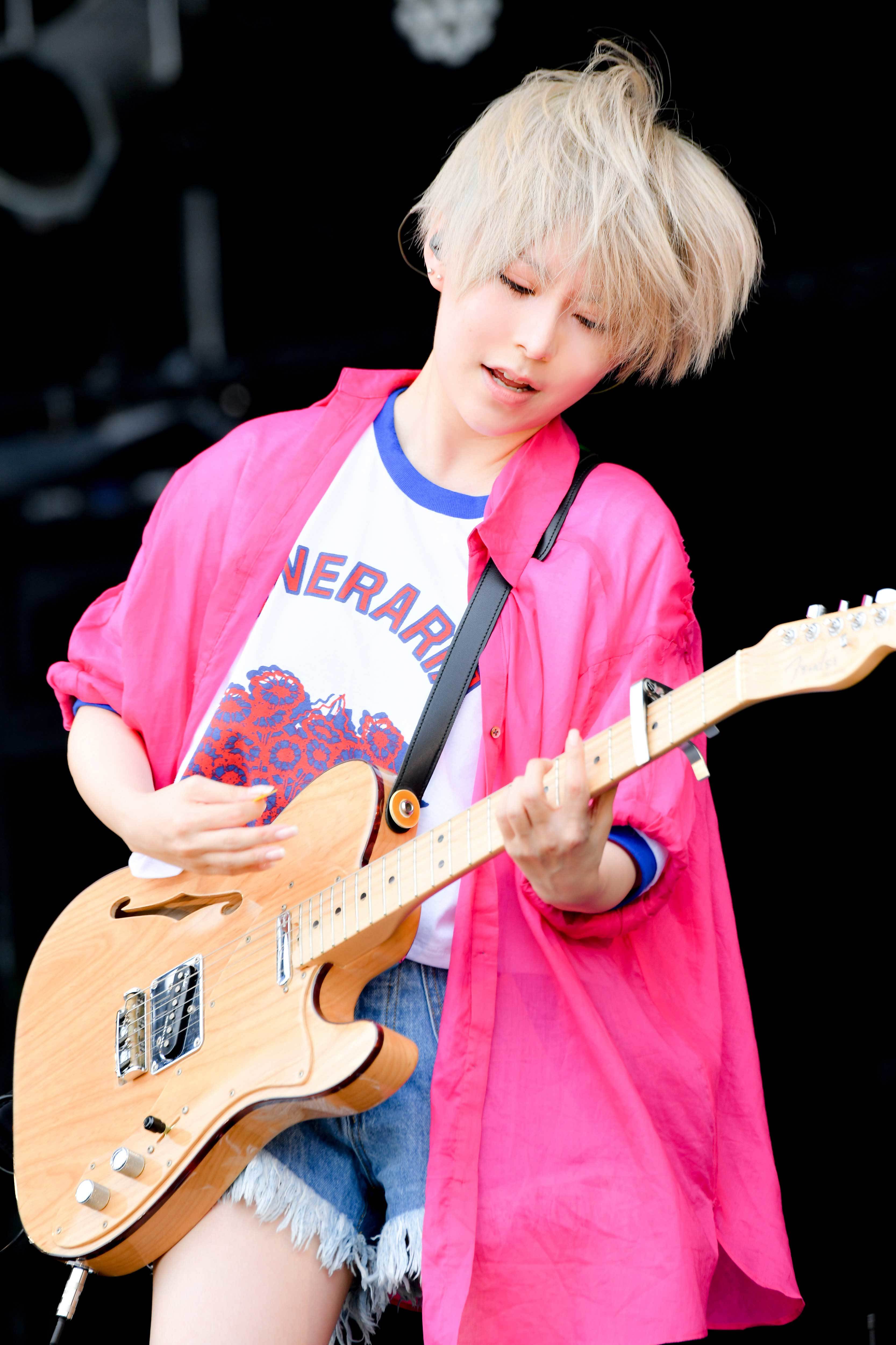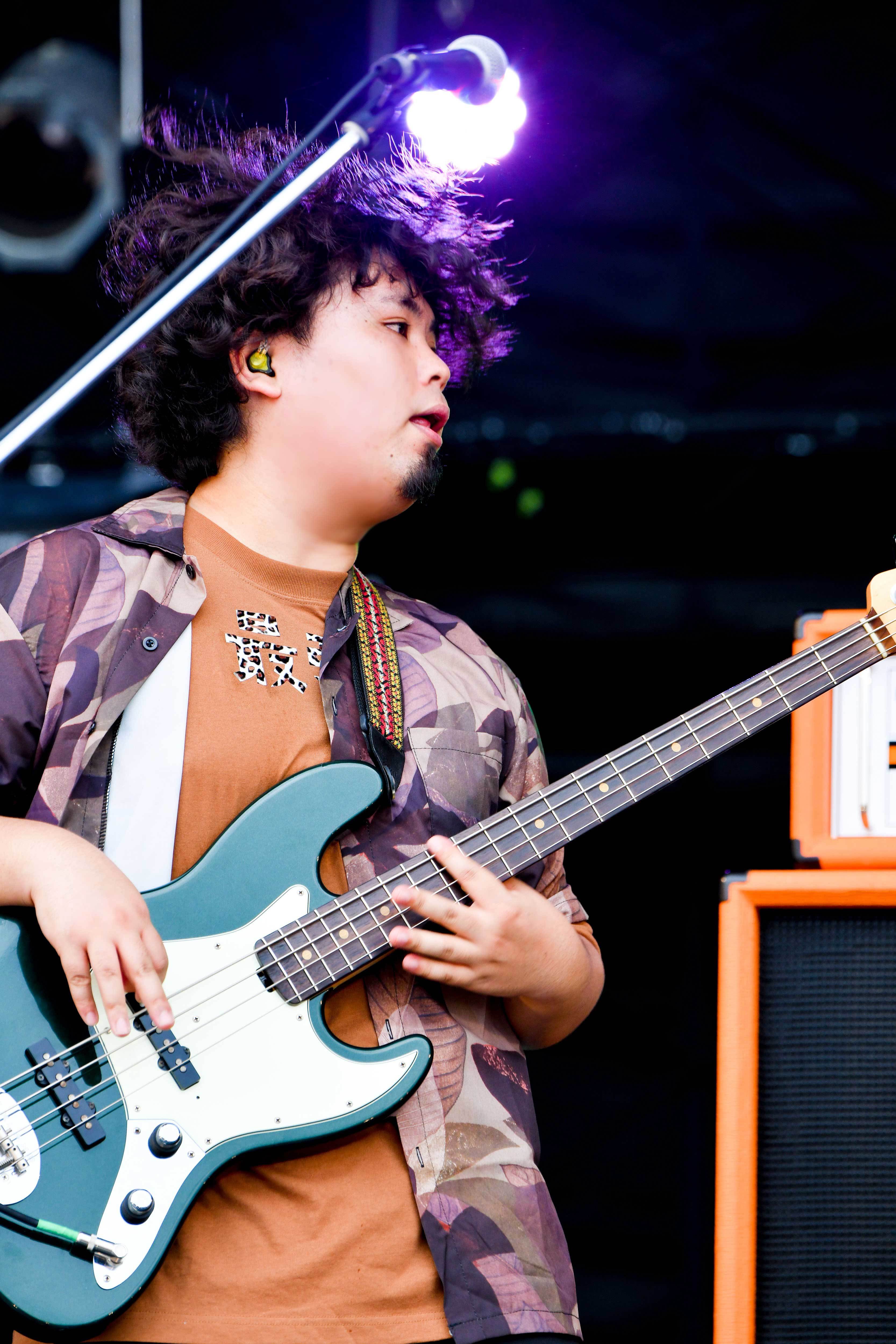 おなじみの掛け声でいっきにヒートアップさせる「DENKOUSEKKA」でロケットスタート。ギターカッティングにスラップベース、雫(Vo.Gt)の意味深なボーカルも相まって、観客は初っ端から踊らずにはいられない。さらに雫が「みんな、かかって来る準備はできてるのかー?」と挑発すると、メンバー自らも弾む「エレクトリック・パブリック」でもっとアッパーに。エジマハルシ(Gt)のギターも高速で鳴ってテンションはますます上昇。すると今度は映画『スマホを落としただけなのに』の主題歌にもなった「ヒミツ」で聴く者を惑わす。地面を踏みしめるようにして立つ雫が放つハイトーン、一筋縄ではいかない展開、3弦の絡みも印象的。