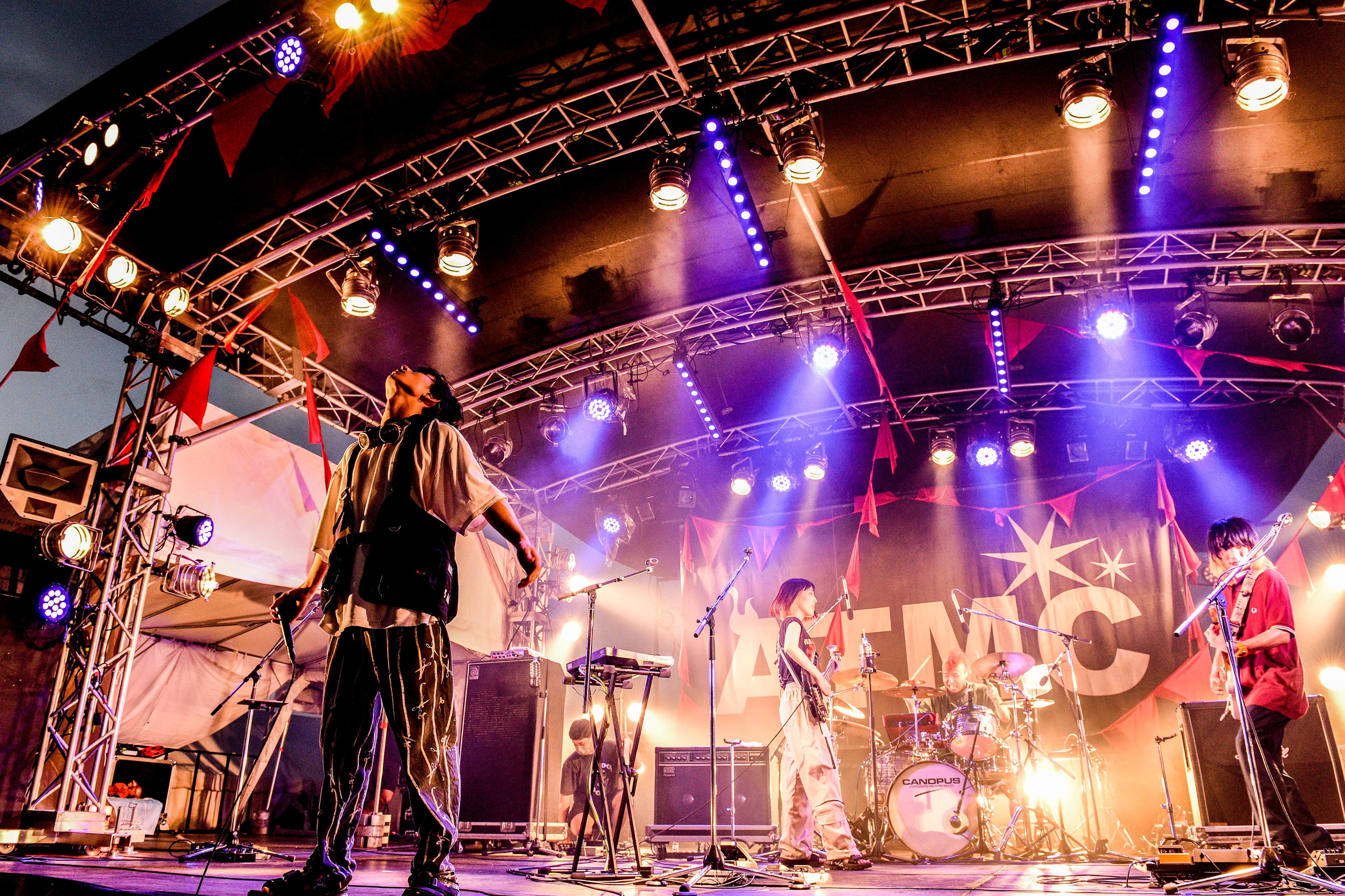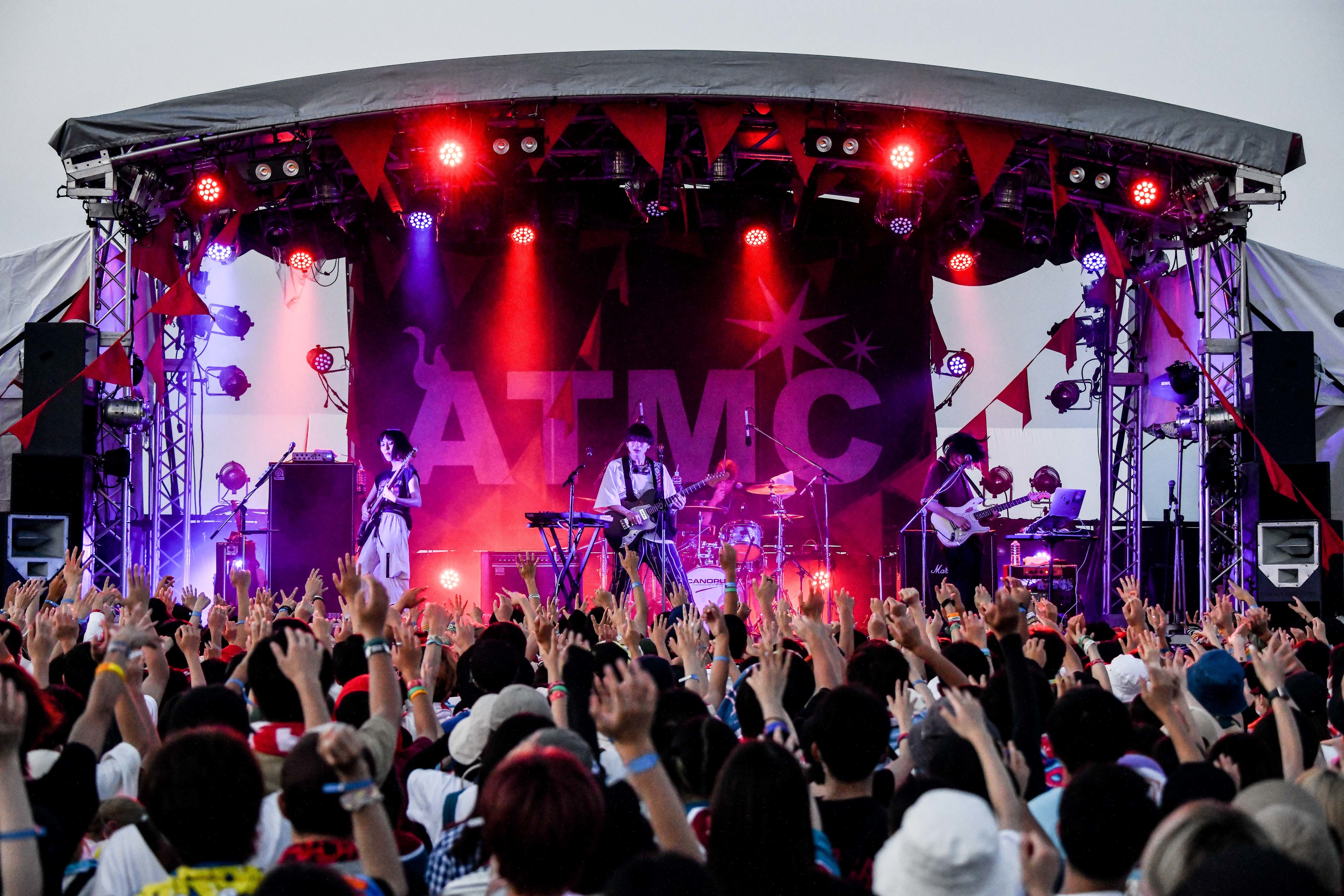 さらなる一体感を生んだ「万事思通」の曲終わりで、「みんな声出てる! やばいね!」(くぅ)とATMCを埋め尽くす歓声にこたえ、「人生で初めて聴いた!」「感激! まじで!」「これがライブかー!!」とメンバーもそれぞれに叫ぶ。野外で大歓声を浴びながら音を鳴らすという経験が初めてなのだから、興奮をおさえられないのも無理はない。そんな感動的な景色の中、ラストは、「もっとついてきてね!」と怒涛のビートで攻めたてる「第一次世界」、「不革命前夜」でハンドクラップがヒートアップ!バンドの歴史に新たなるページを刻んだステージを終えた。