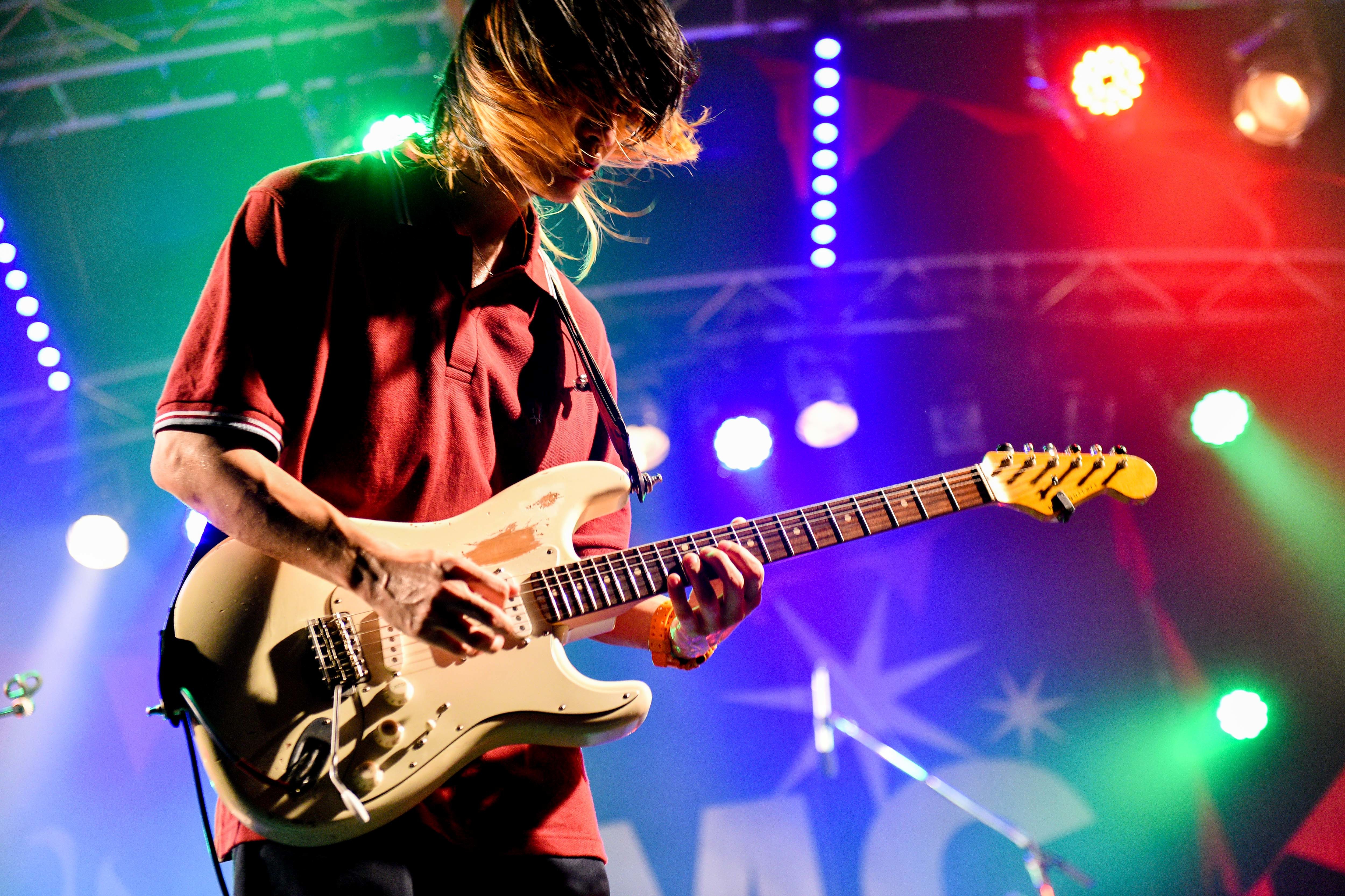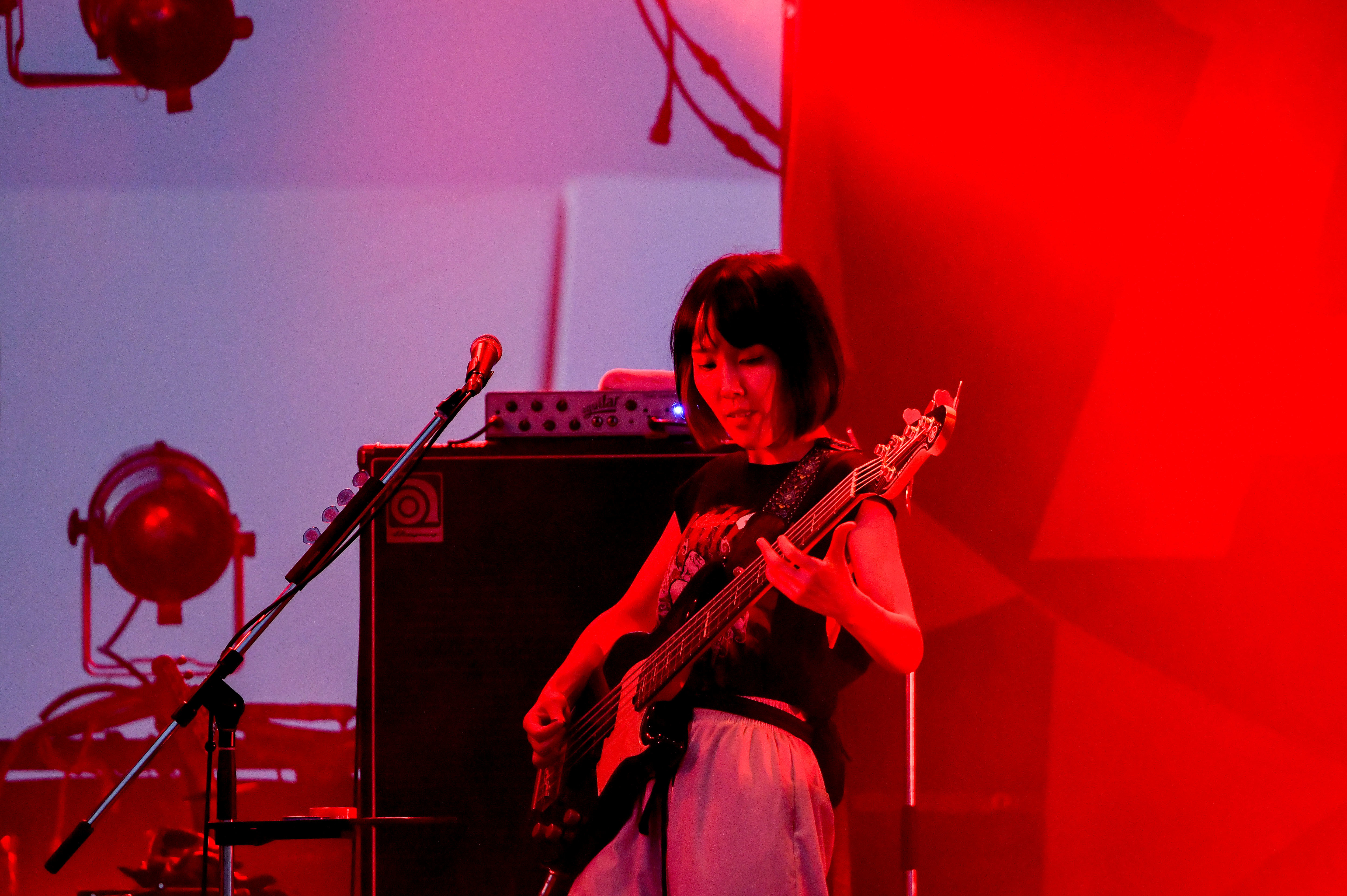 「伝えたいことがある! 僕たちはどんな世の中でもただ音楽をするだけ!ひとりひとりに歌います!」くぅ(Gt.Vo)の魂のこもった言葉通り、ライブ中終始、後方までもれなく全員の顔を見渡すように歌っていたメンバーの姿が印象的だった。ダンサブルな「月曜日の歌」でファンキーなグルーヴを爆発させ、夕日(Gt)とかほ(Ba)が容赦ないソロバトルを繰り広げる「ボキは最強」では、ハンドマイクでステージを動きまわるくぅに必至にくらいつくオーディエンス。途中、くぅのちょっと卑猥なジェスチャーにあわせてダンスする場面も。自然とみんなを巻き込むパフォーマンスの秀逸さは、フェス1年目とは思えない巧みさだ。