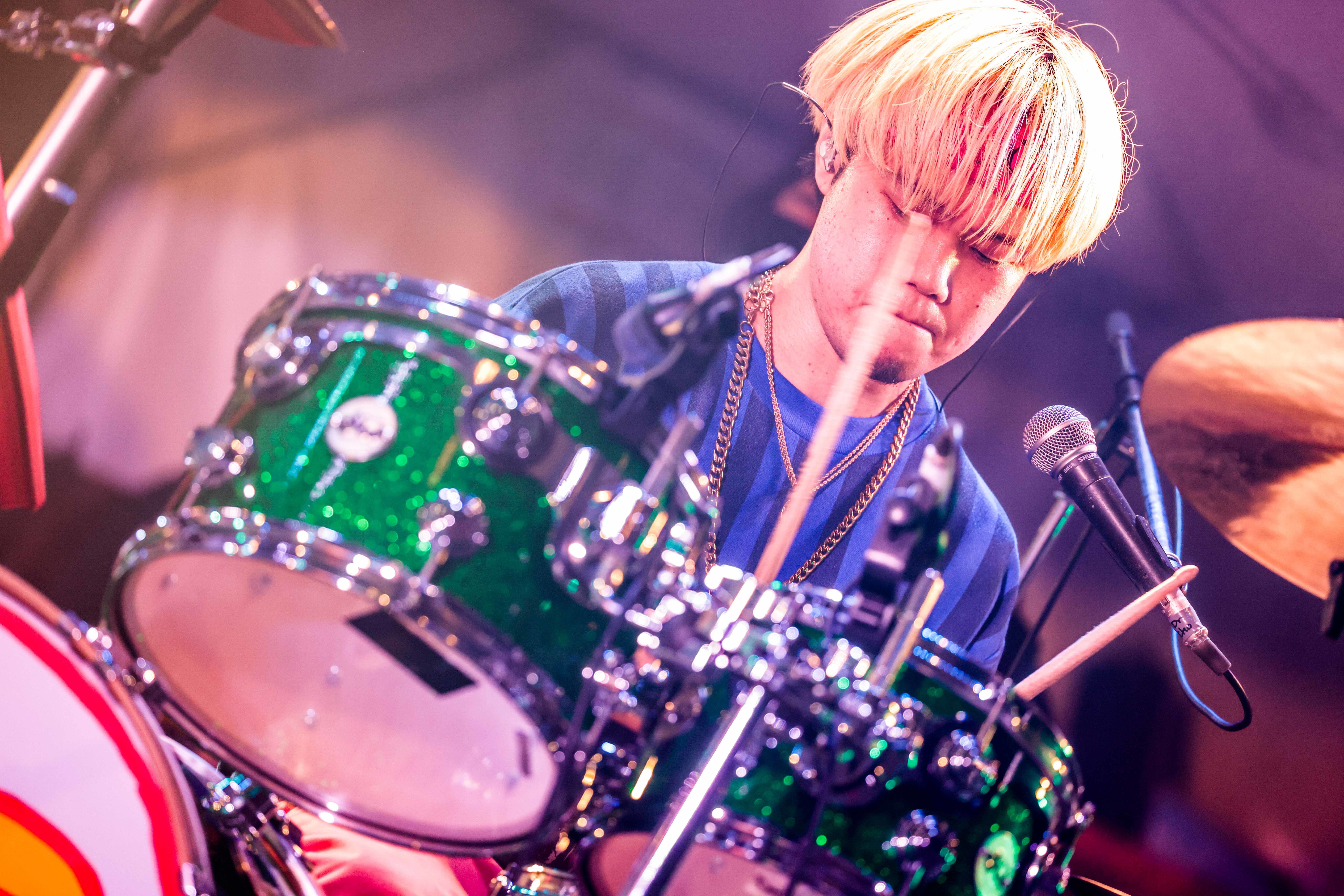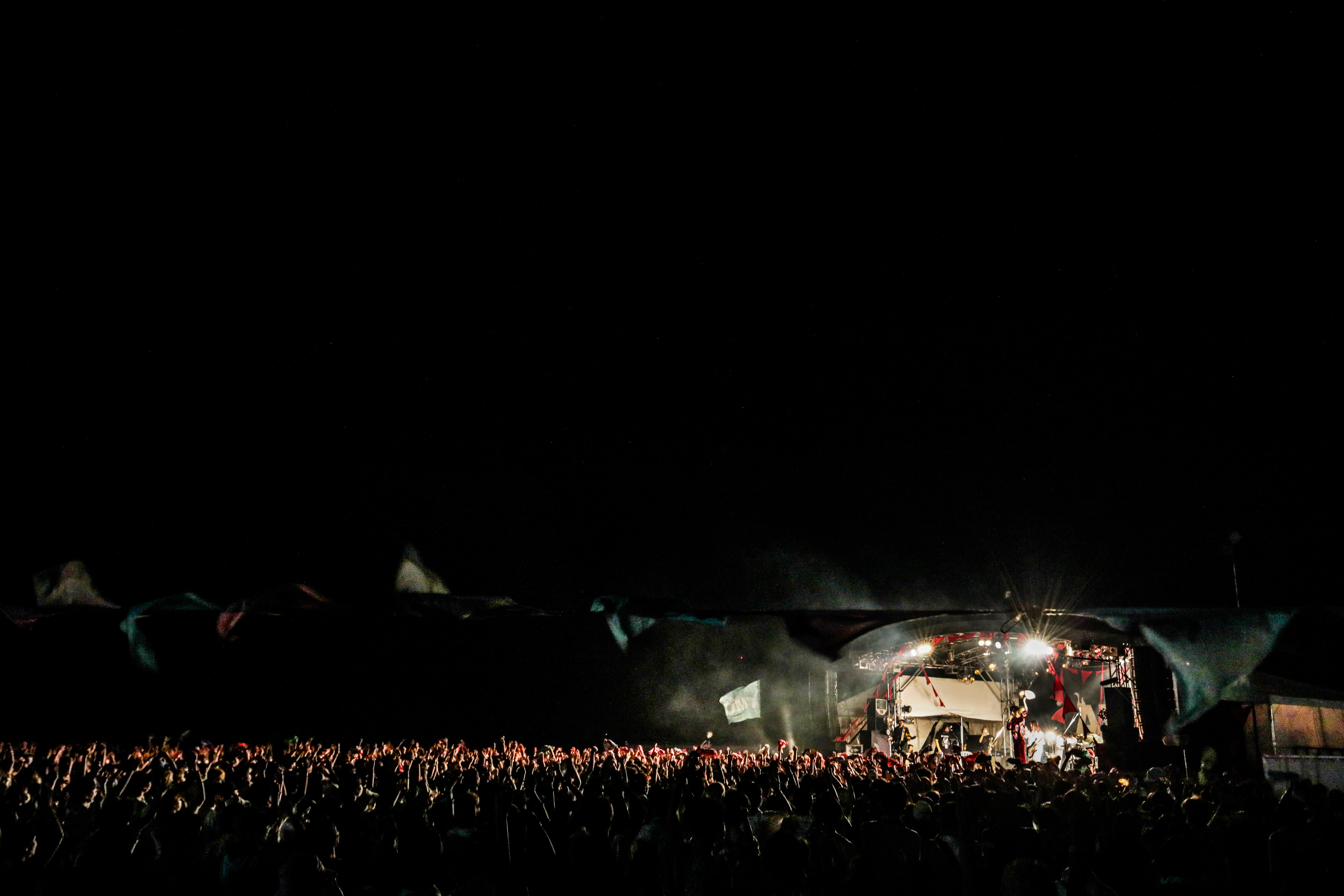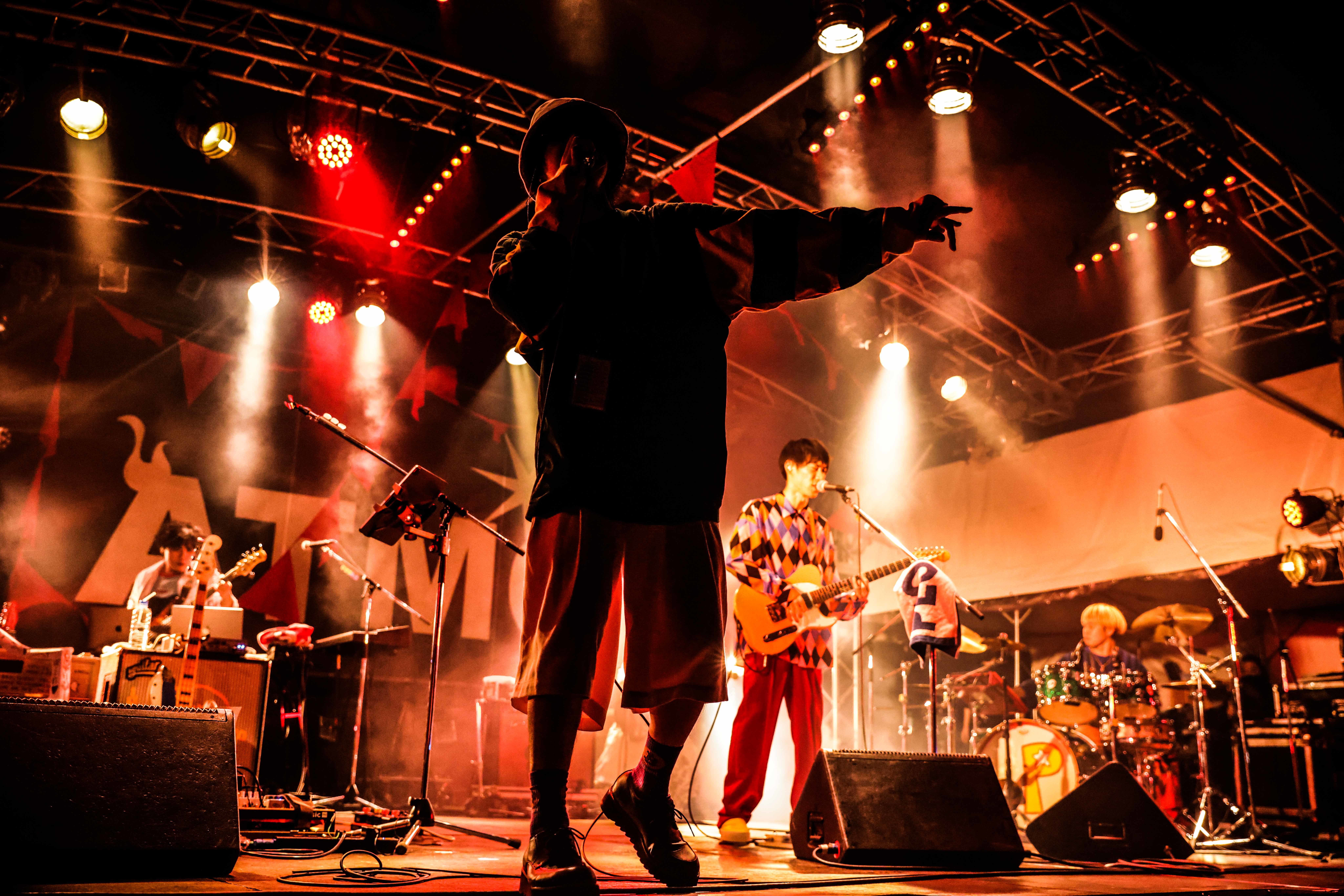 「銃の部品」「スクール!!」とたたみかけ、独特のグルーヴで飛び跳ねずにはいられない後半を経て、「たくさんやりたい曲はあったけど……」と、イントロで歓声があがったラストソングの「エッジワース・カイパーベルト」へ。タオルがくるくると夜空を舞う光景は圧巻だった。サビへの高揚感はすさまじく、いっきに視界がクリアになっていく感覚に。心地良い風がそよぐ中、みんなすべてを開放してジャンプ&ジャンプ!アンコールは、「とっておきの曲があるんですよ」と拍手と歓声を受け、未発表曲「大衆音楽」を披露。完璧な盛り上がりで、記憶に残るクロージングアクトとなった。